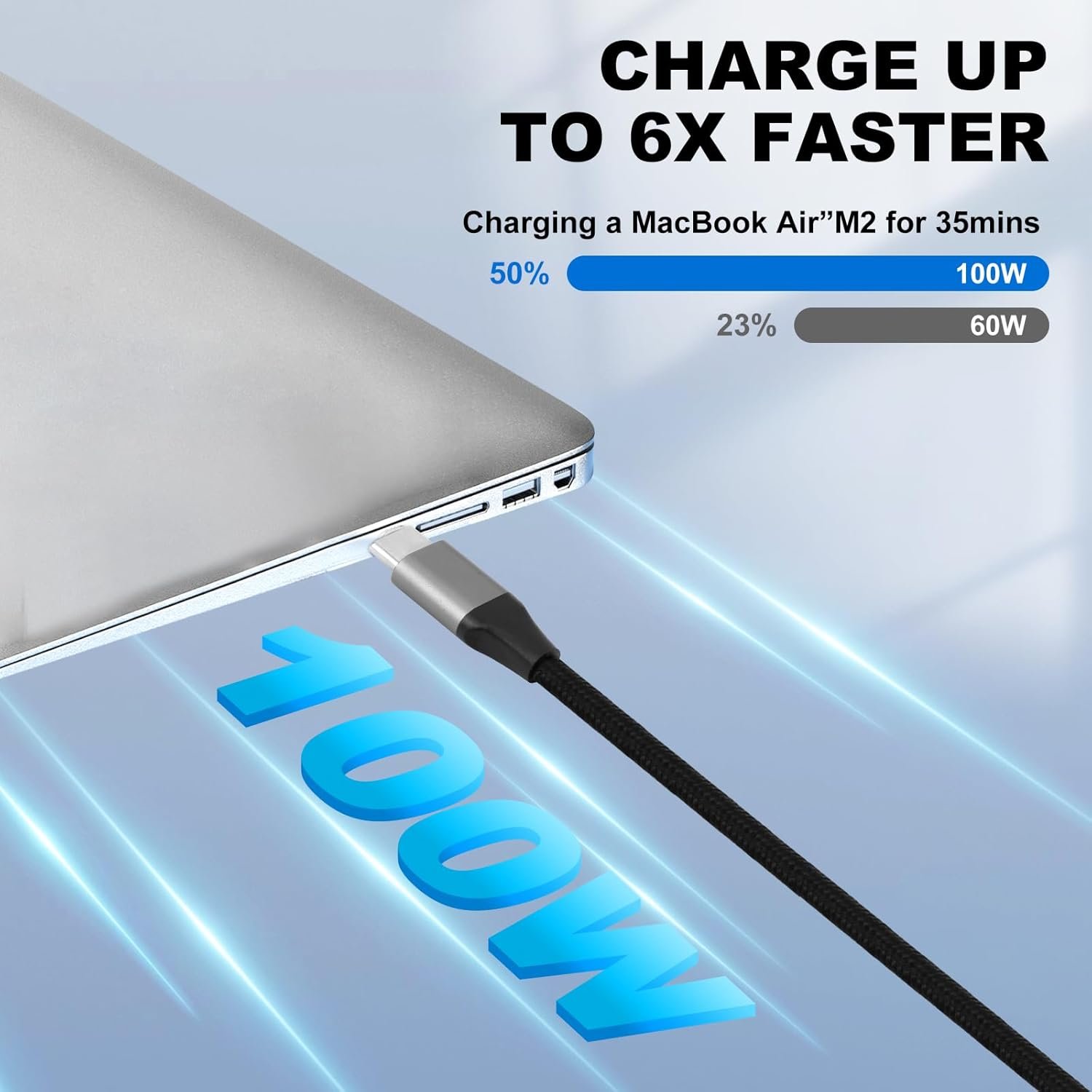 100W FAST CHARGING & SYNC: This Type C to Type C cable supports PD 3.0 and QC 4.0 fast charging up to 20V/5A and supports USB-C charging adapters (such as 18W/30W/45W/60W/100W and above adapters) and data transfer (480Mbps).