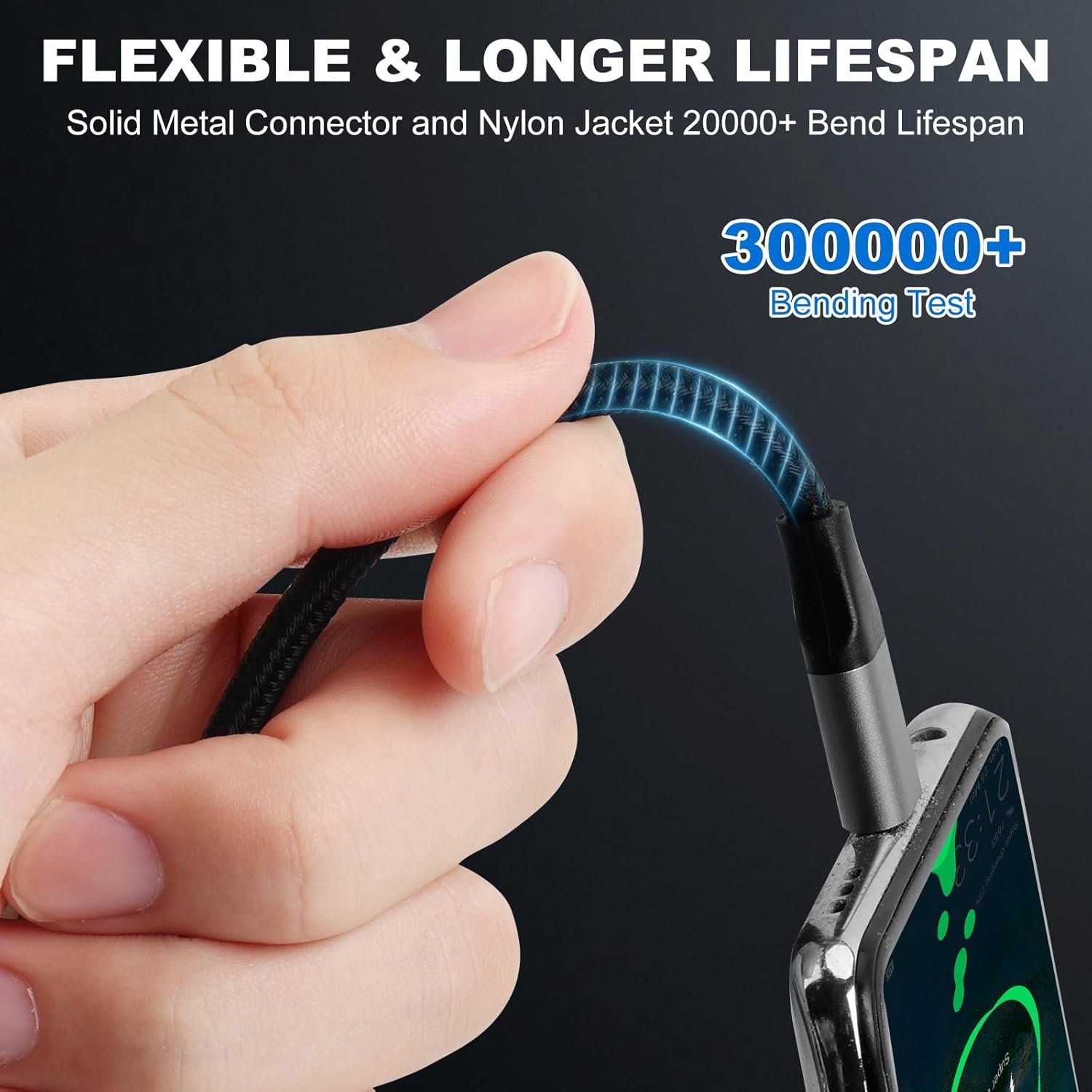 DURABILITY: This USB C data cable is made of nylon braided material and precision laminated soldered tips, it can withstand up to 20,000 bends, flexible and tangle-resistant. Durable and reliable for long-term use.