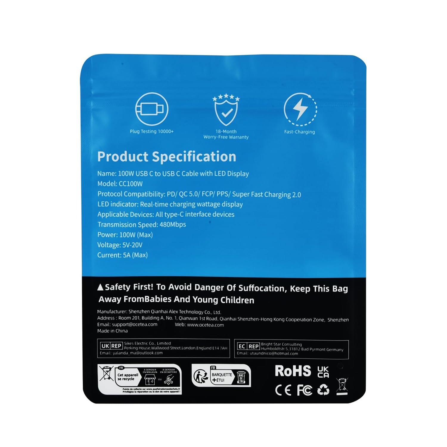 【Best After-Sale Support】Ocetea usb c cables comes with 2 Year Hassle-free warranty, We are confident in the long-lasting performance of our type c cable, Please feel free to contact us if you have any questions about the usb c to c cable.