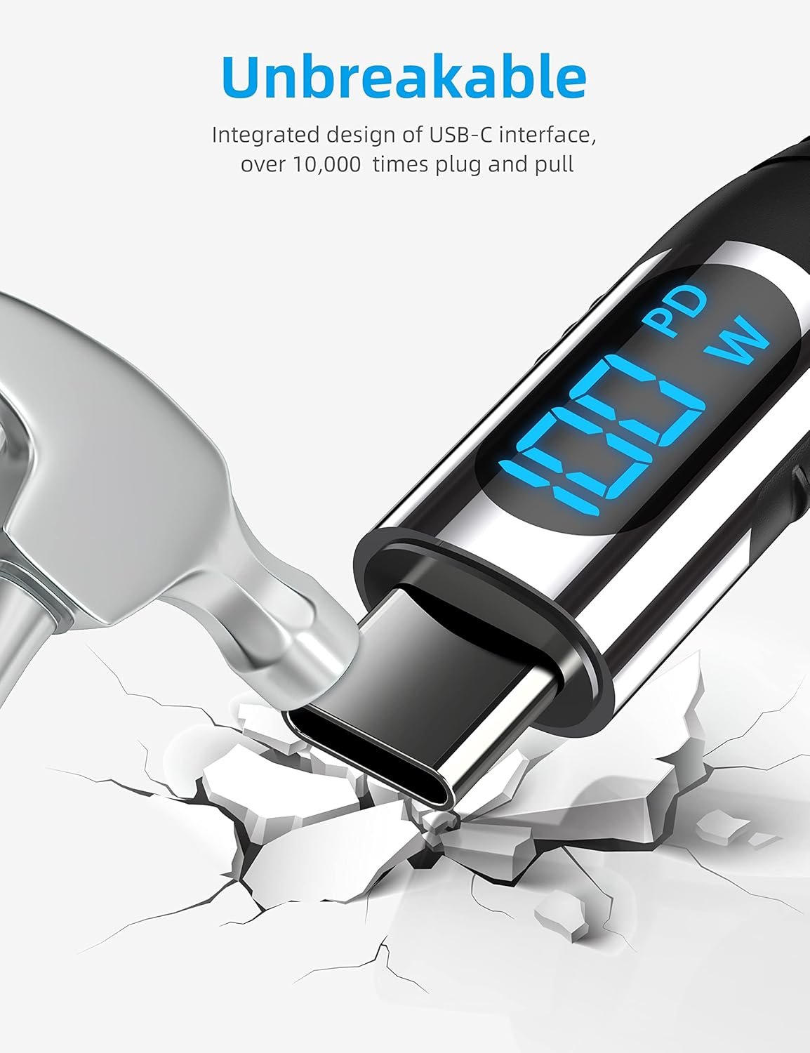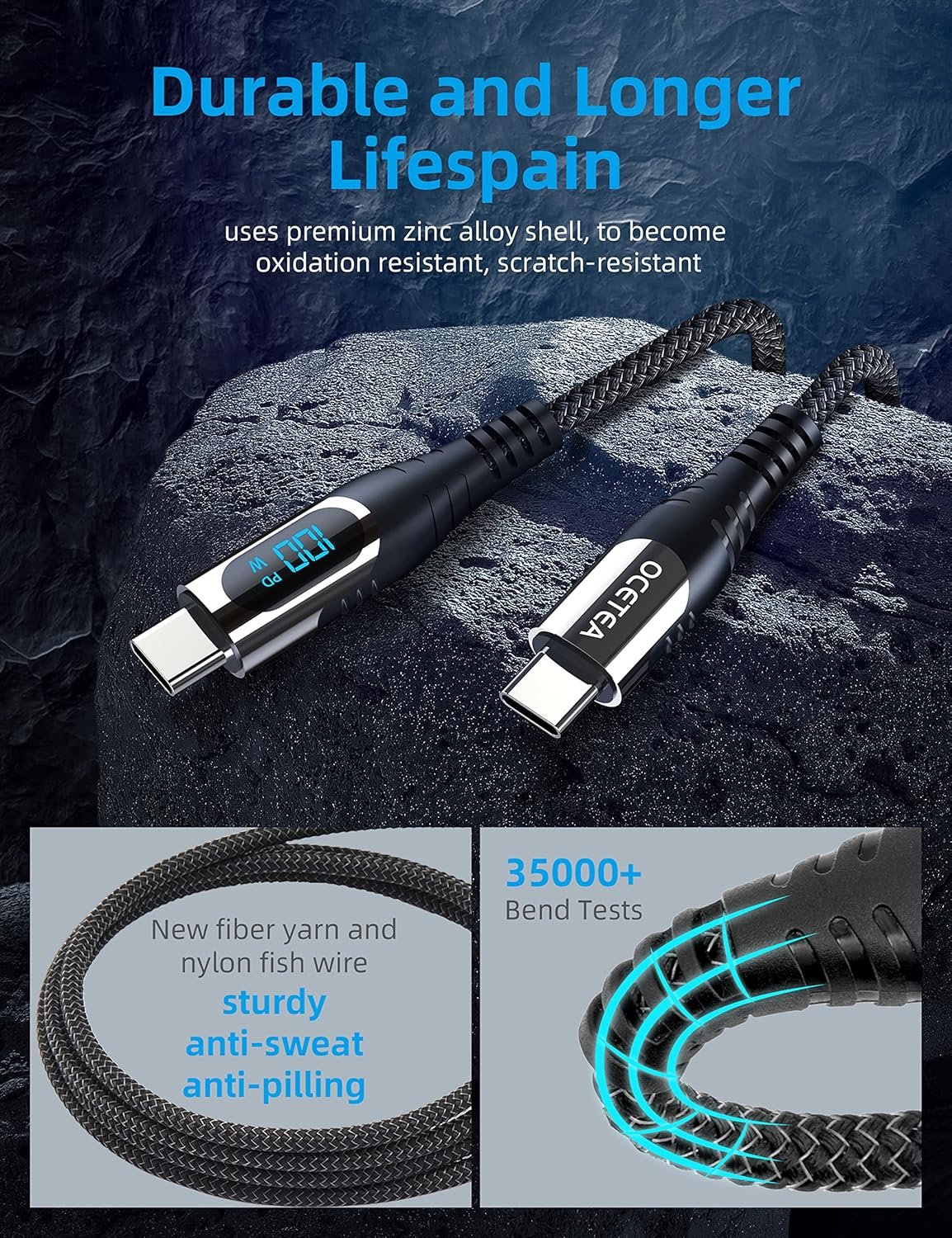 【Unique LED Wattage Display 】Ocetea c to c cable fast charging are the coolest innovation of the usb c charging, seeing in real time how fast a given device is charging. It is easier to confirm whether a power adapter is actually able to provide the watts that it claims.