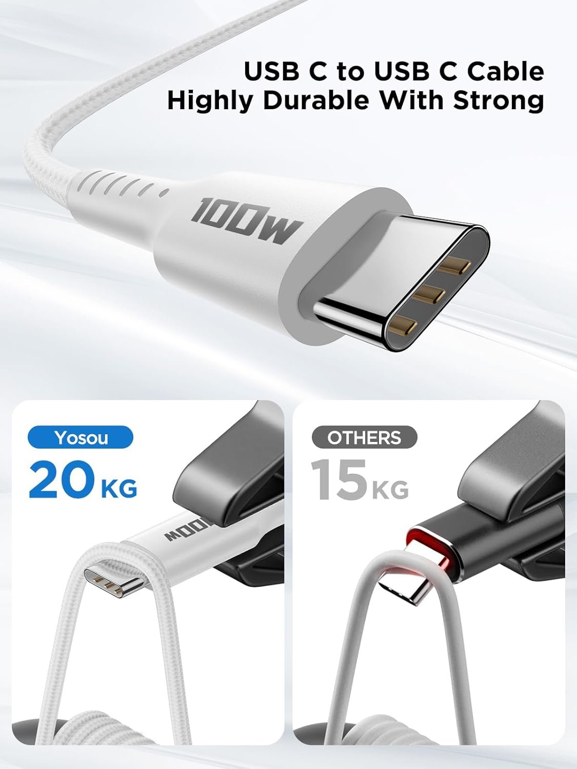 【Green & Recyclable, USB C Cable】Yosou USB C to USB C Cable are braided from 48 strands of recyclable cotton yarn material, Using recycled materials is one of the ways we can lower the carbon impact of our products.And Premium Nylon Braided usb c cable adding additional durability and tangle-free, can bear 30000+ bending test. Lasts 30x longer than ordinary cables. It built-in laser welding technology, which ensure the metal part won’t break.