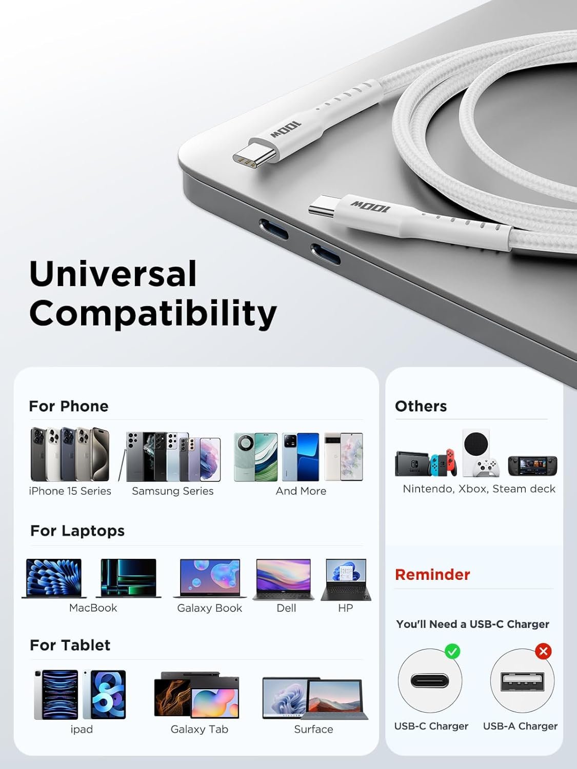 ![USB C to USB C Cable 100W USBC to USBC [10ft 2Pack] USB C to C Fast Charging Cable Fast Type C to C Charger Cord for iPhone 15 Pro Max Plus,MacBook Pro/Air, iPad Pro,Samsung Galaxy S24 Ultra S23,Pixel USB C to USB C Cable 100W USBC to USBC [10ft 2Pack] USB C to C Fast Charging Cable Fast Type C to C Charger Cord for iPhone 15 Pro Max Plus,MacBook Pro/Air, iPad Pro,Samsung Galaxy S24 Ultra S23,Pixel](https://i2.wp.com/m.media-amazon.com/images/I/71rQKTCeSYL._SL1360_.jpg?ssl=1)