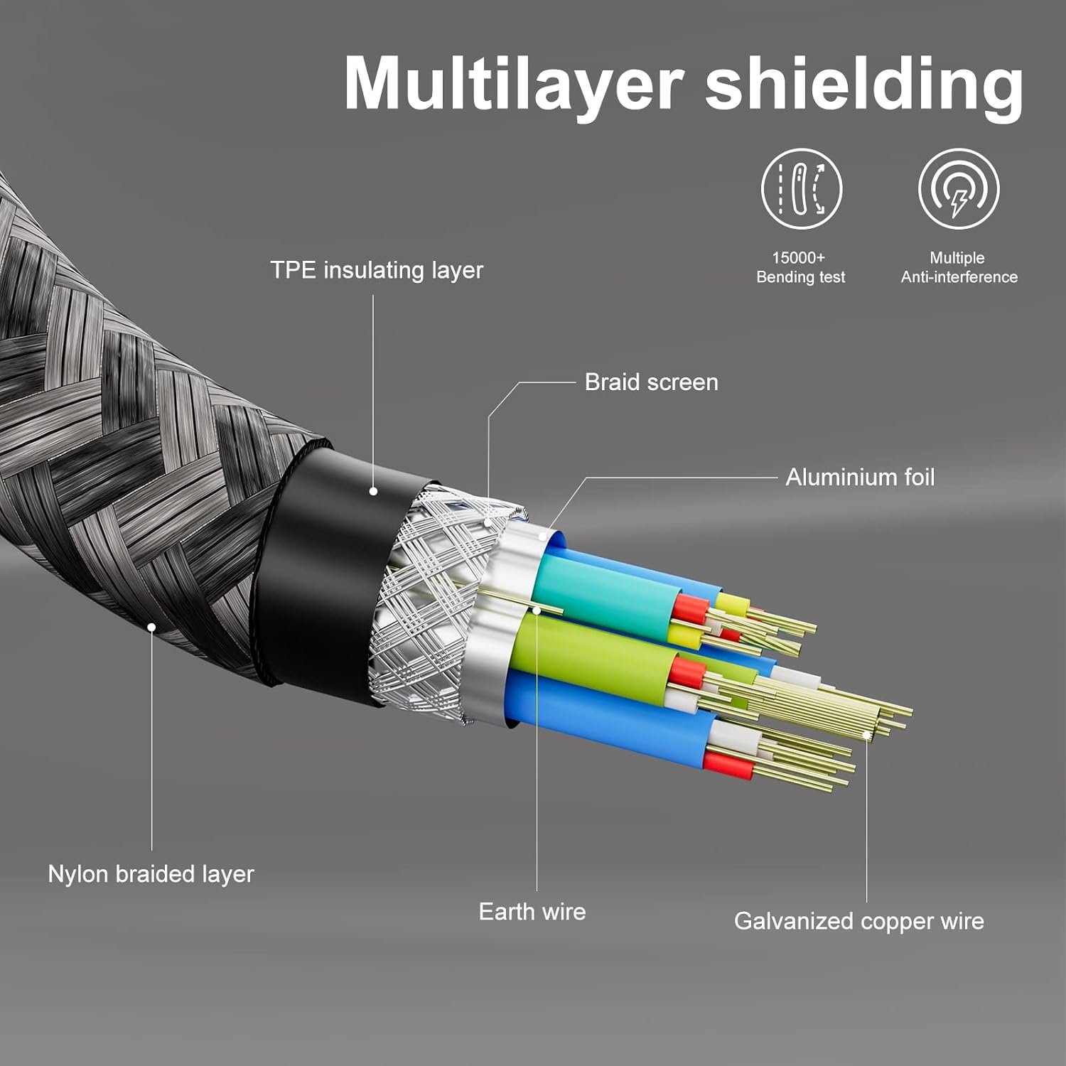 Extra Durability with nylon braided cable, which provides a smoother touch and extra durability. High-quality aluminum alloy case on both connectors with molded strain relief ensures its reliable performance and longer bend lifespan.