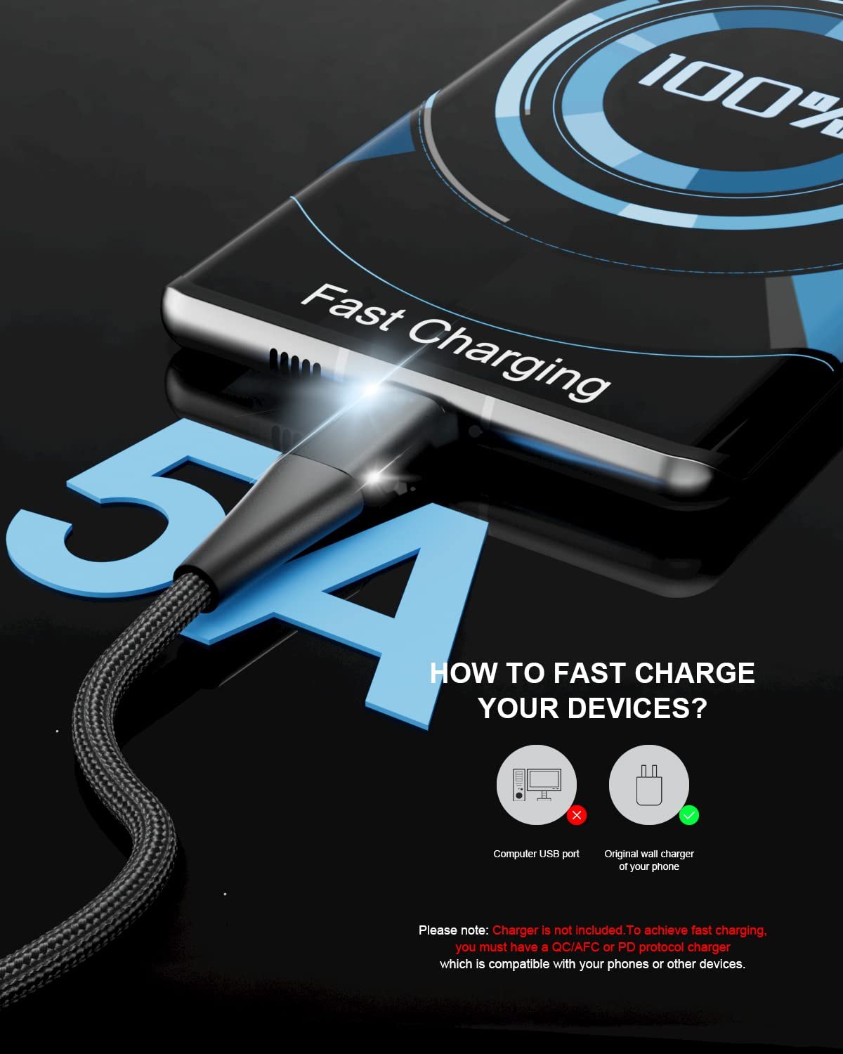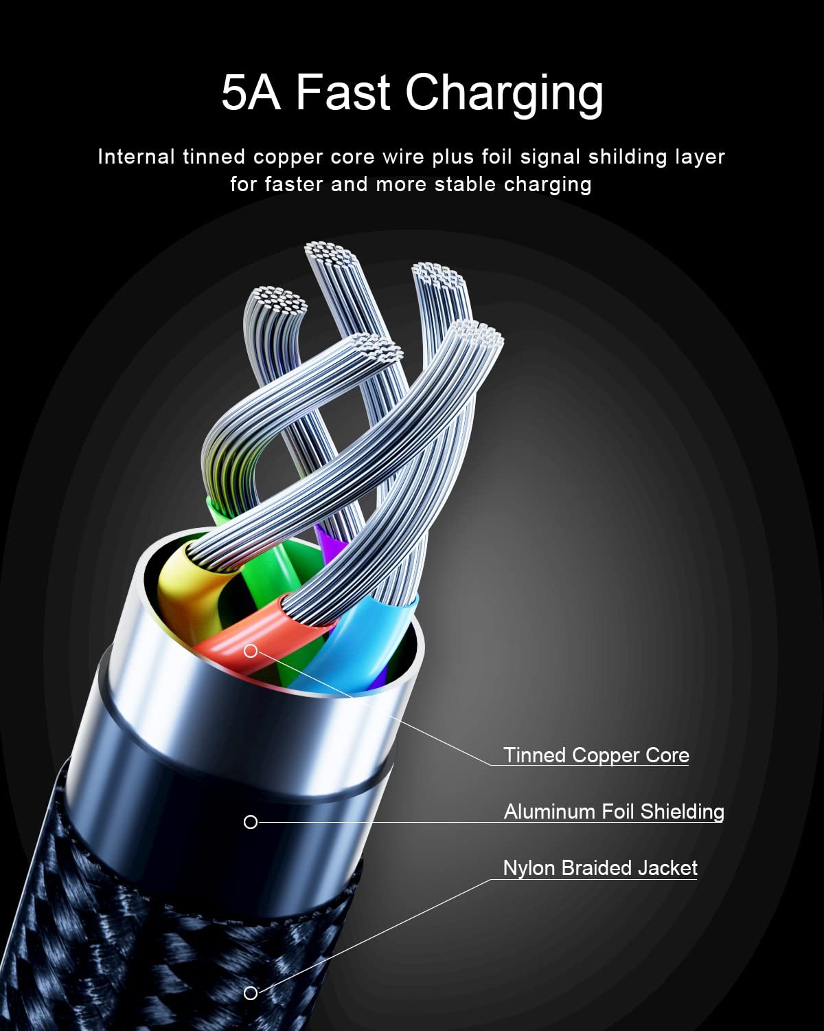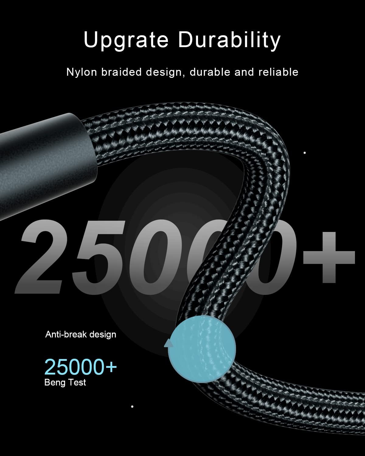 【Enhanced Durability】: Strong fiber, the most flexible, powerful and durable material, makes tensile force increased by 200%. Can bear 15000+ bending test. Premium Aluminum housing makes the cable more durable, nylon braided type c cable adds additional durability and tangle free.