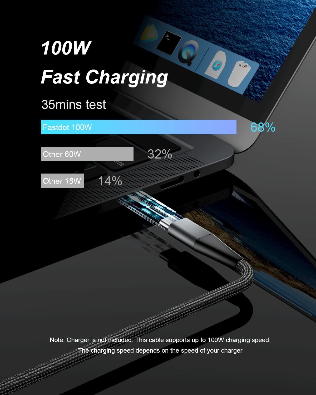 【100W High Speed Charging】: Output power up to 20V 5A, which is ensured by high-speed safe charging, and the USB 2.0 supports data transfer speed can reach 40~60MB/S (480Mbps). NOTE: This product DO NOT support video output.