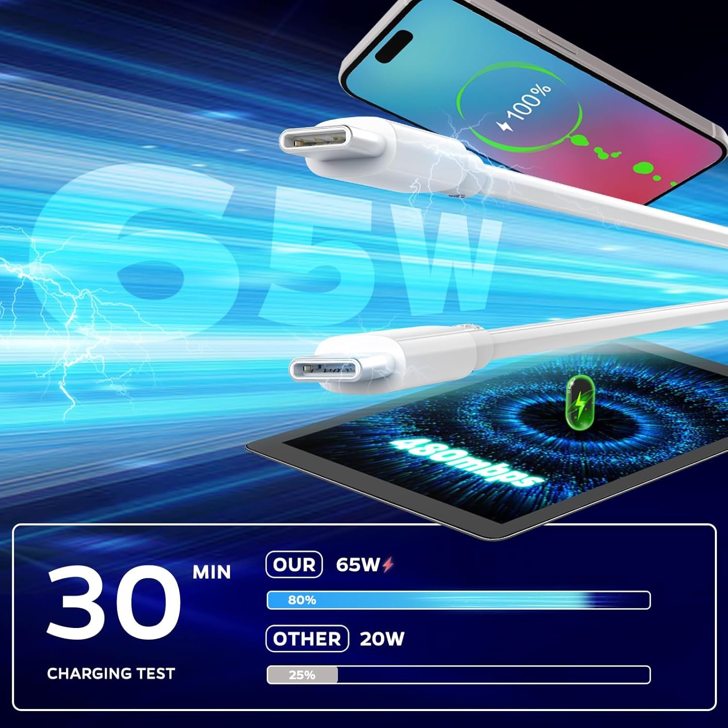 Stay charged up and connected with this high-quality USB C to USB C cable. Power up your devices at lightning speed with 65W charging support and experience rapid data transfer speeds of up to 480Mbps.