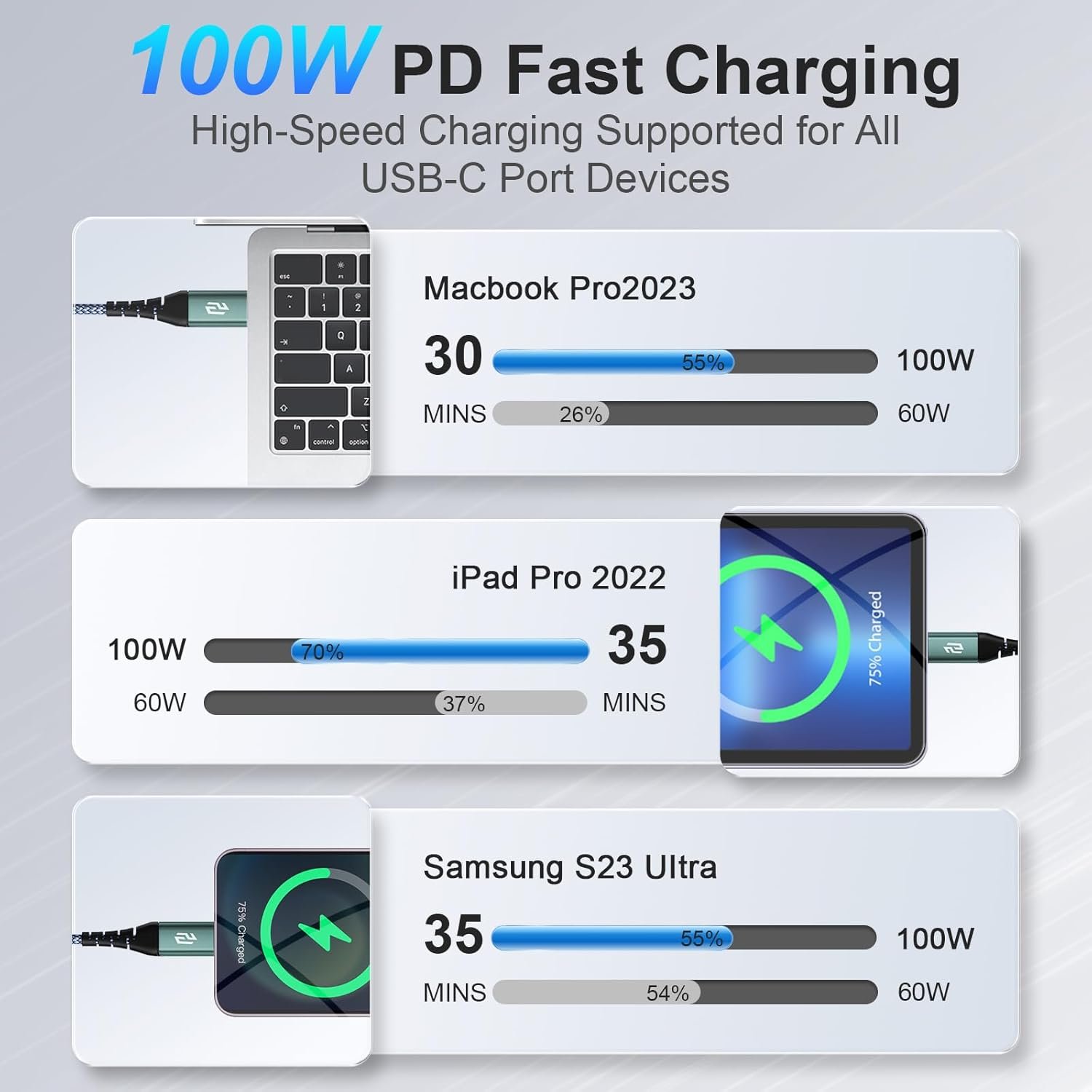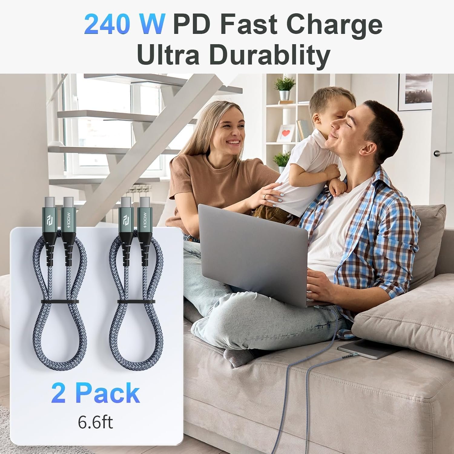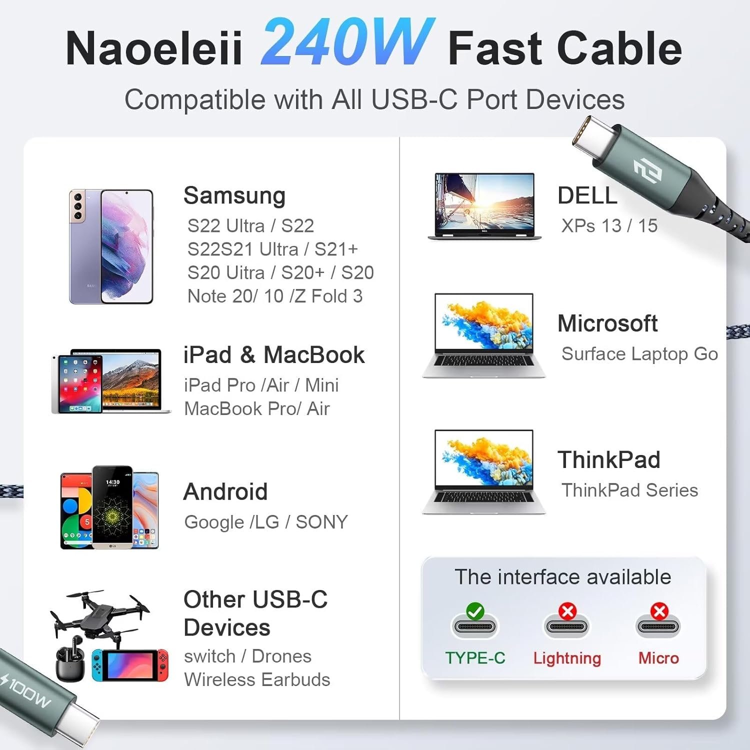 Naoeleii 100W-240W 6.6FT USB C cable enables fast charging for your USB-C laptops, tablets, or smartphones.