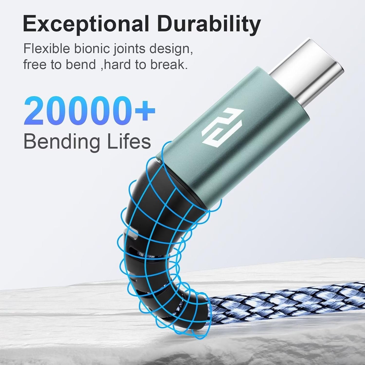 【Unmatched Safety and Compatibility】Our usb c charger cable is designed with your safety in mind. The certified smart chip regulates the current and voltage, it intelligently adjusts the input power to prevent overcharging and overheating, maximizing your battery life.