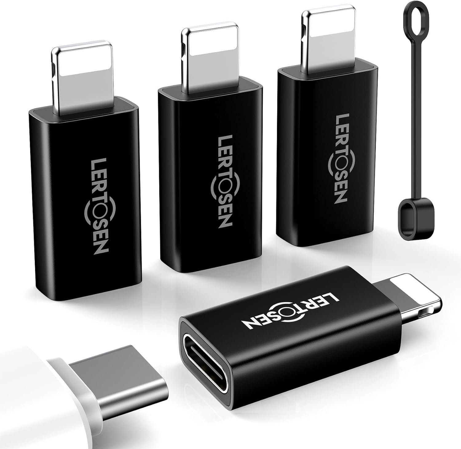 What You Get: You will get 4 pieces of usb c female to light-ning male adapters, 4 pieces of anti-lost loops,12-month Warranty and 24/7 friendly customer service