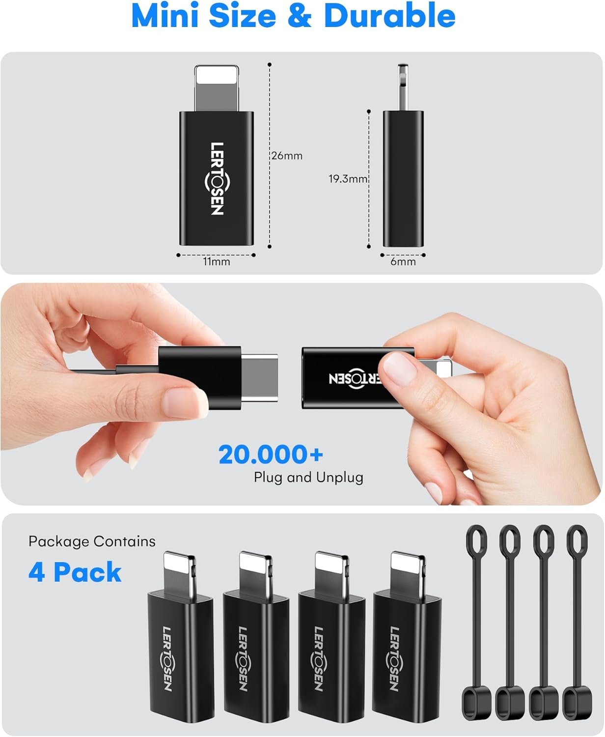 Mini Size with Anti-Lost Design: This iphone to usb c adapter comes with two anti-lost silicone loops, which makes it easy to hold onto and attached to your most used cables.Designed to prevent loss and facilitate easy storage and portability. Ideal for use at home, in the office, or while on the road