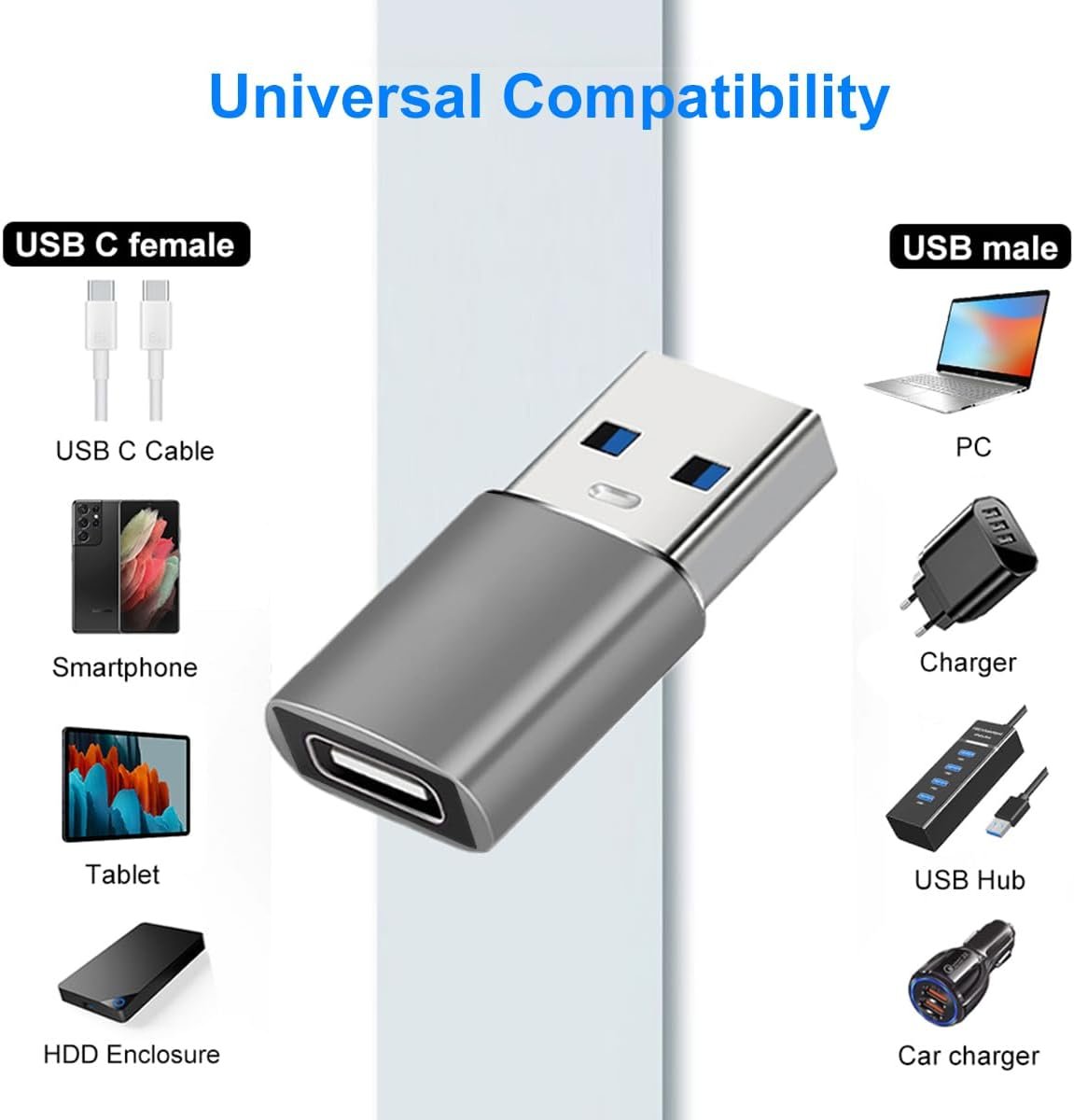 USB to USB C Adapter: USB C Female to USB A 3.1 Male, compatible with usb c cable, usb c flash drive, usb c card reader, and other computer peripherals.