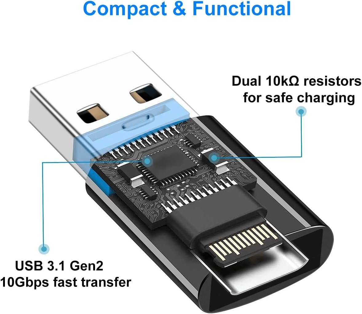 Pack of 1. USB A 3.1 to USB C. This USB C adapter converts a USB-C port to a regular standard USB port at any time, and you will find it so handy. USB A 3.1 Gen2 10Gbps one-sided, faster transfer speeds than conventional USB adapters, backward compatible with USB 3.0 USB 2.0.