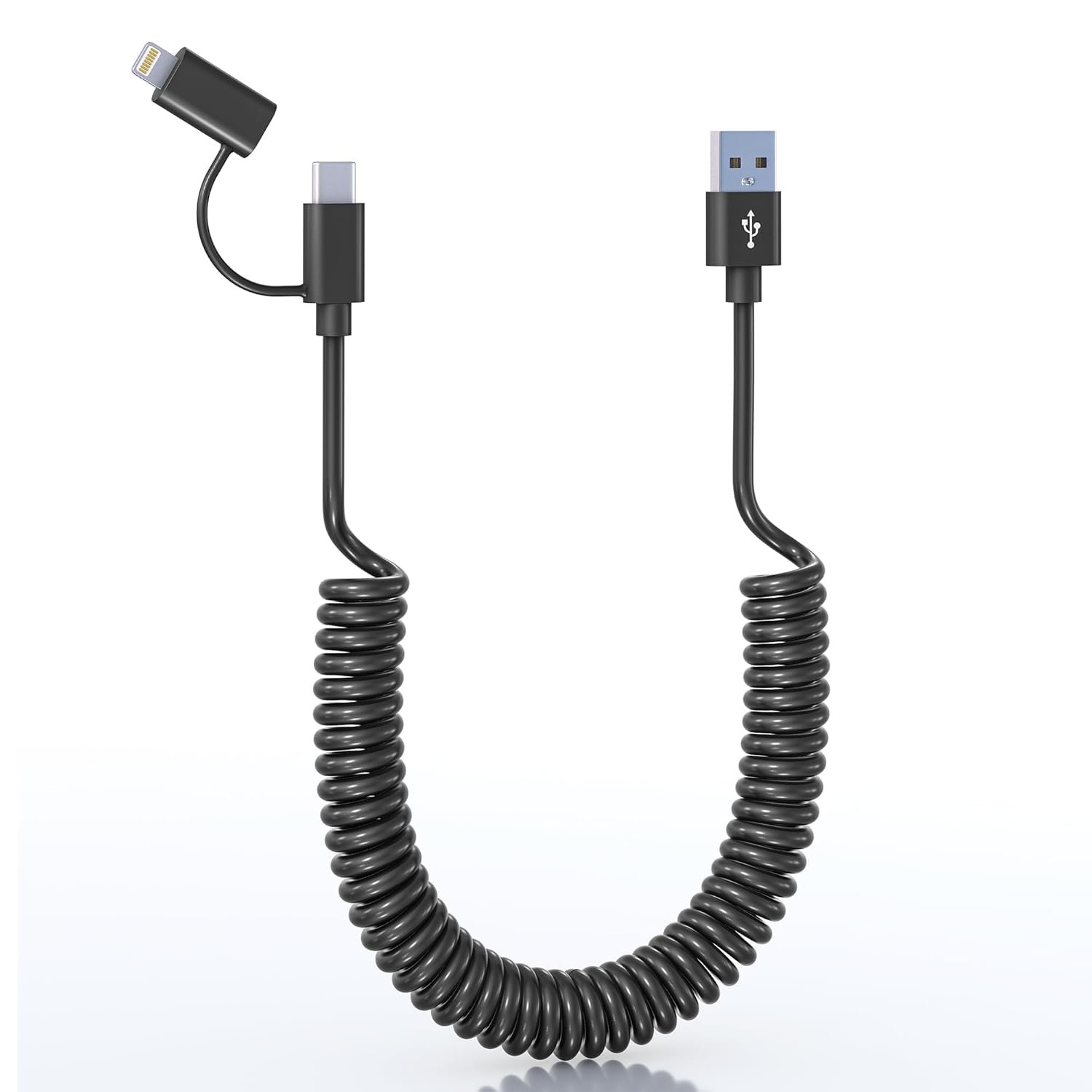 Anti-Tangle & Portable : You will get 1pcs coiled USB A to USB C and Lightning Cable. The coil design of the cable prevents tangles and knots. If you have any questions about the product, please contact us without any doubt.