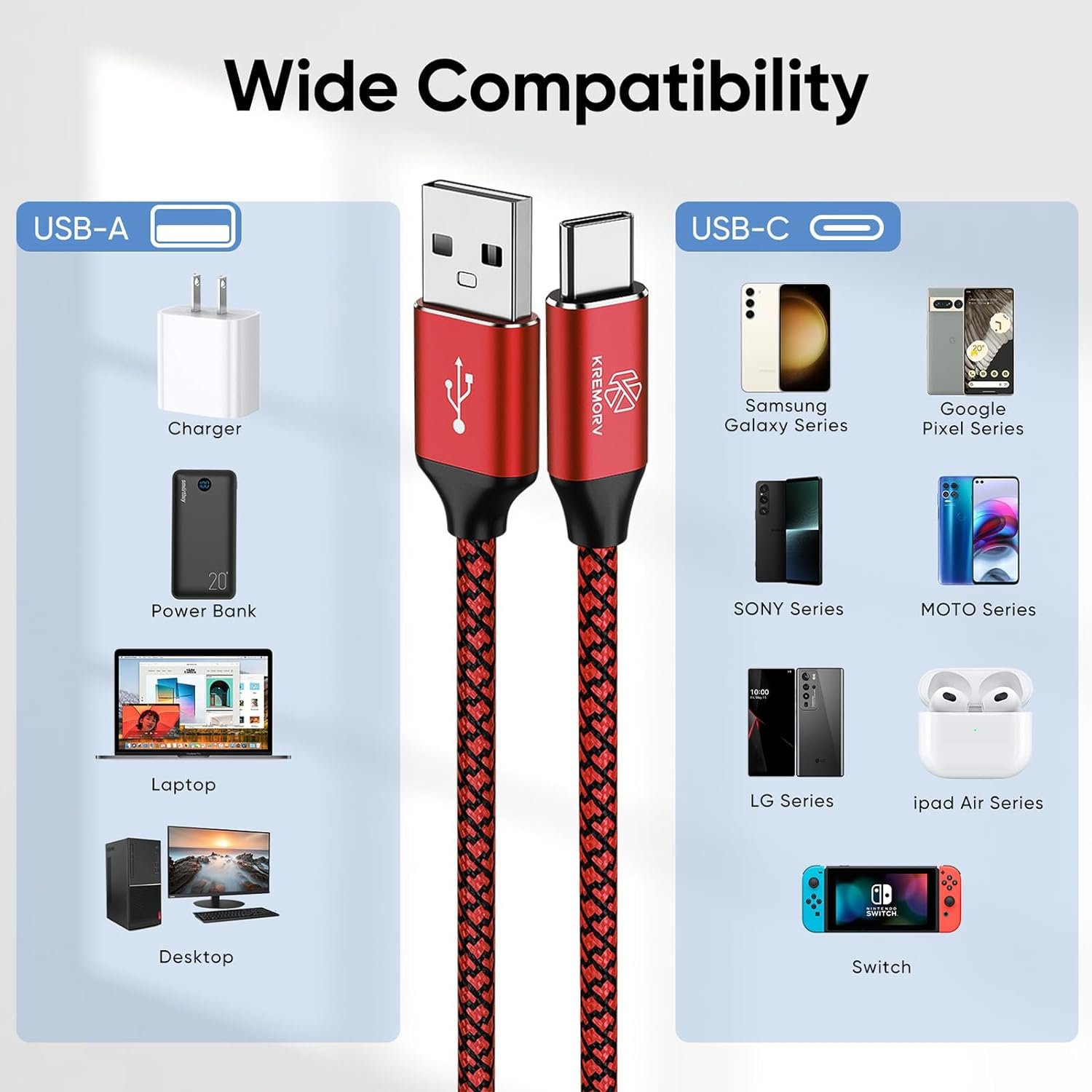 5-Pack 10ft USB A to Type C Cable5-Pack 10ft USB A to Type C Cable