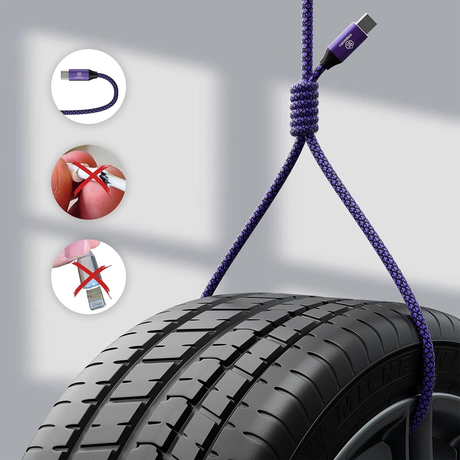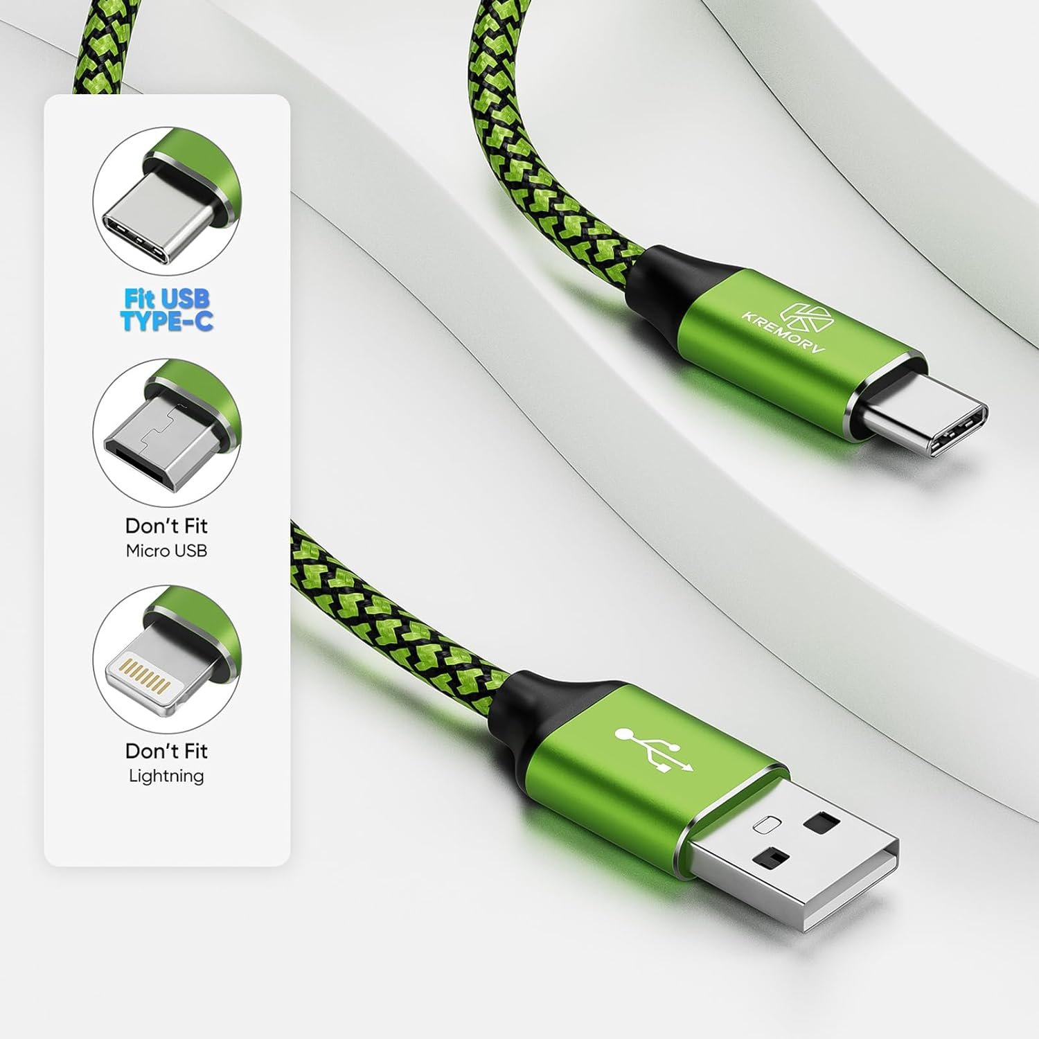 Nylon braided type C charging cables have bright color scheme (green, blue, purple, red, orange) helps you quickly find the cable when you’re in a pinch.