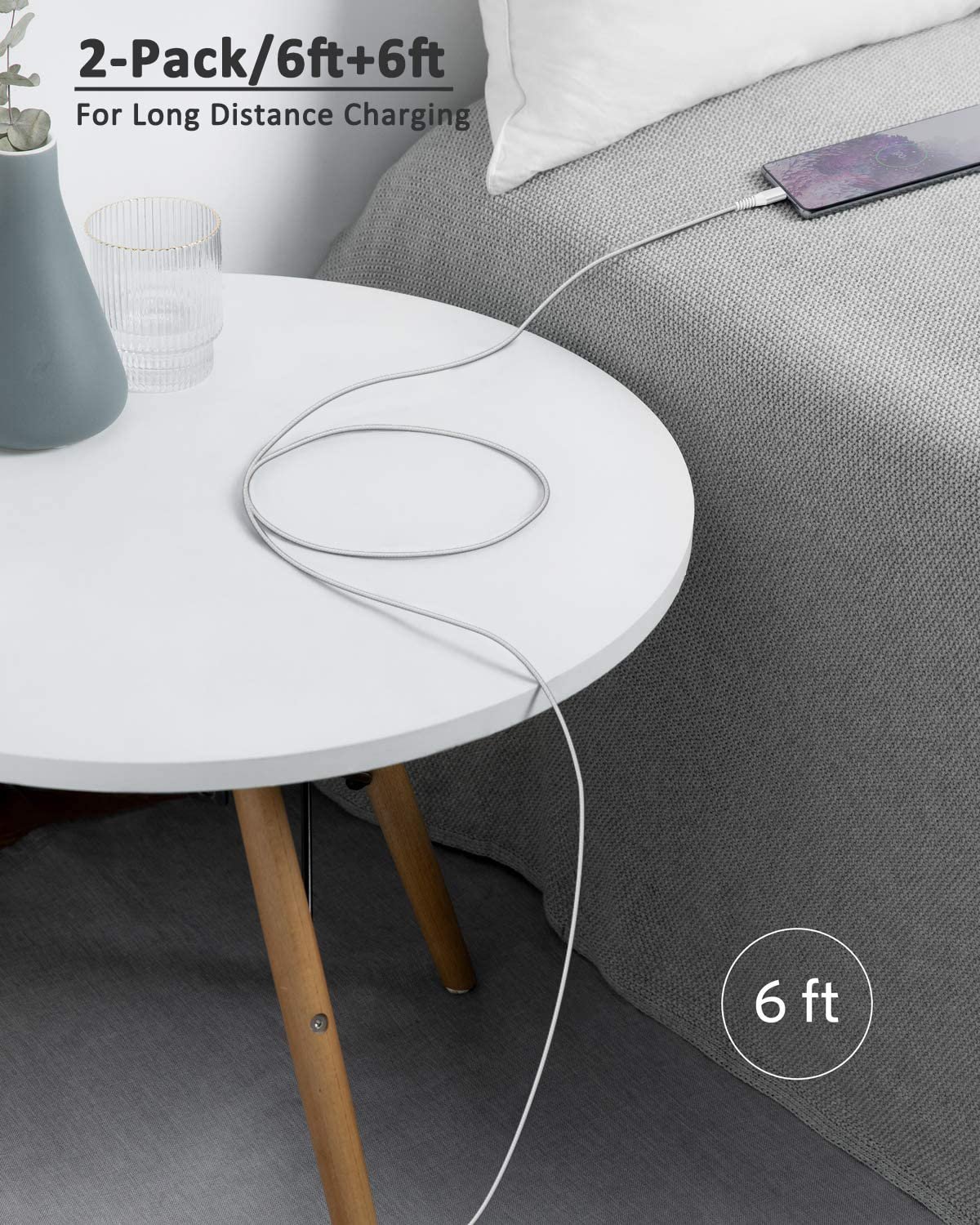 【Perfect 6FT USB C Cord】 With this 2-pack 6ft USB to USB C charging cable, you can comfortably use your devices while charging, whether you’re on the couch, sofa, or even in the backseat of your car. It provides the freedom to use and charge your phone effortlessly in your bedroom, office, or anywhere you desire. Additionally, having an extra cable at home or in the office serves as a reliable backup option