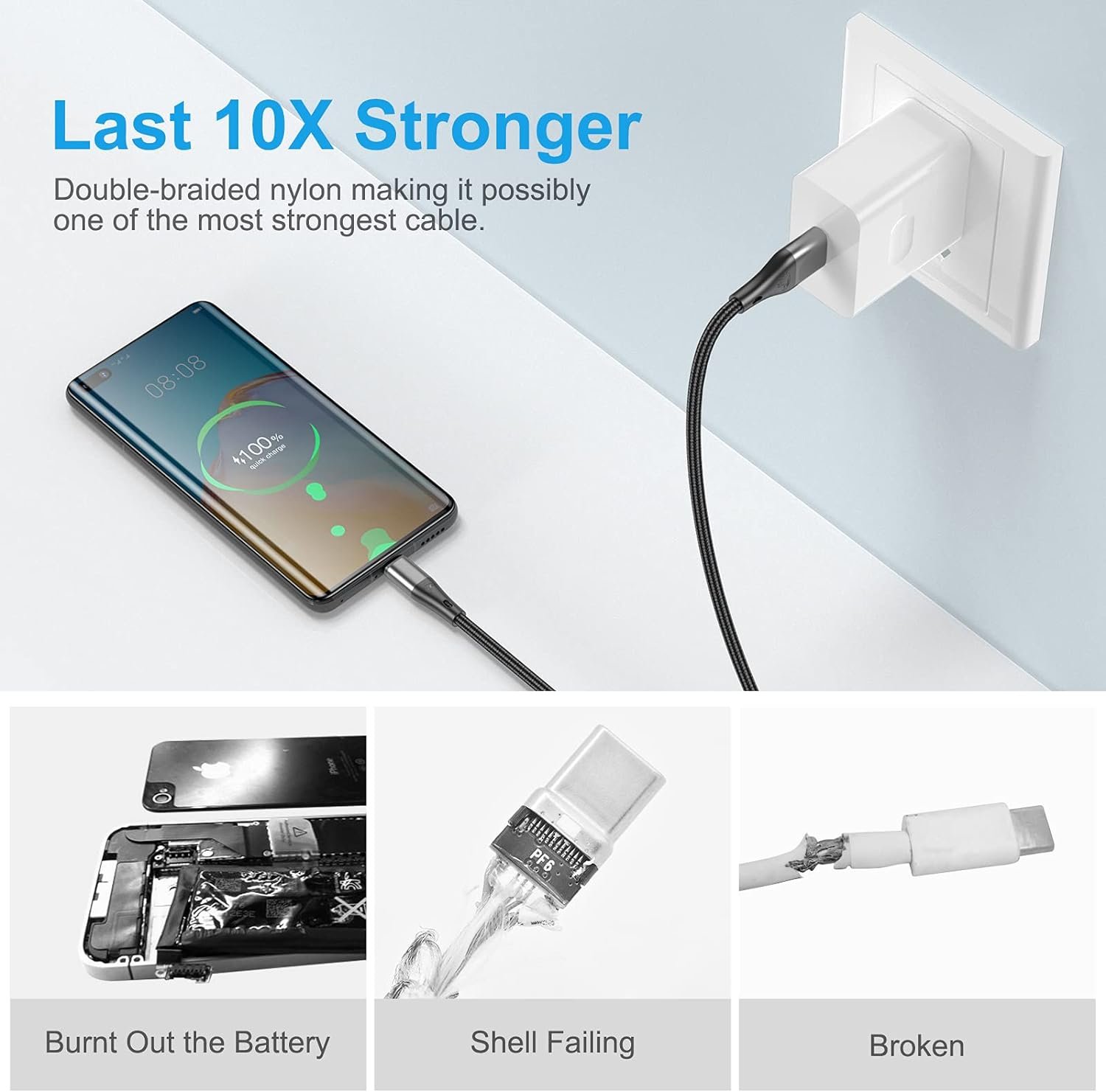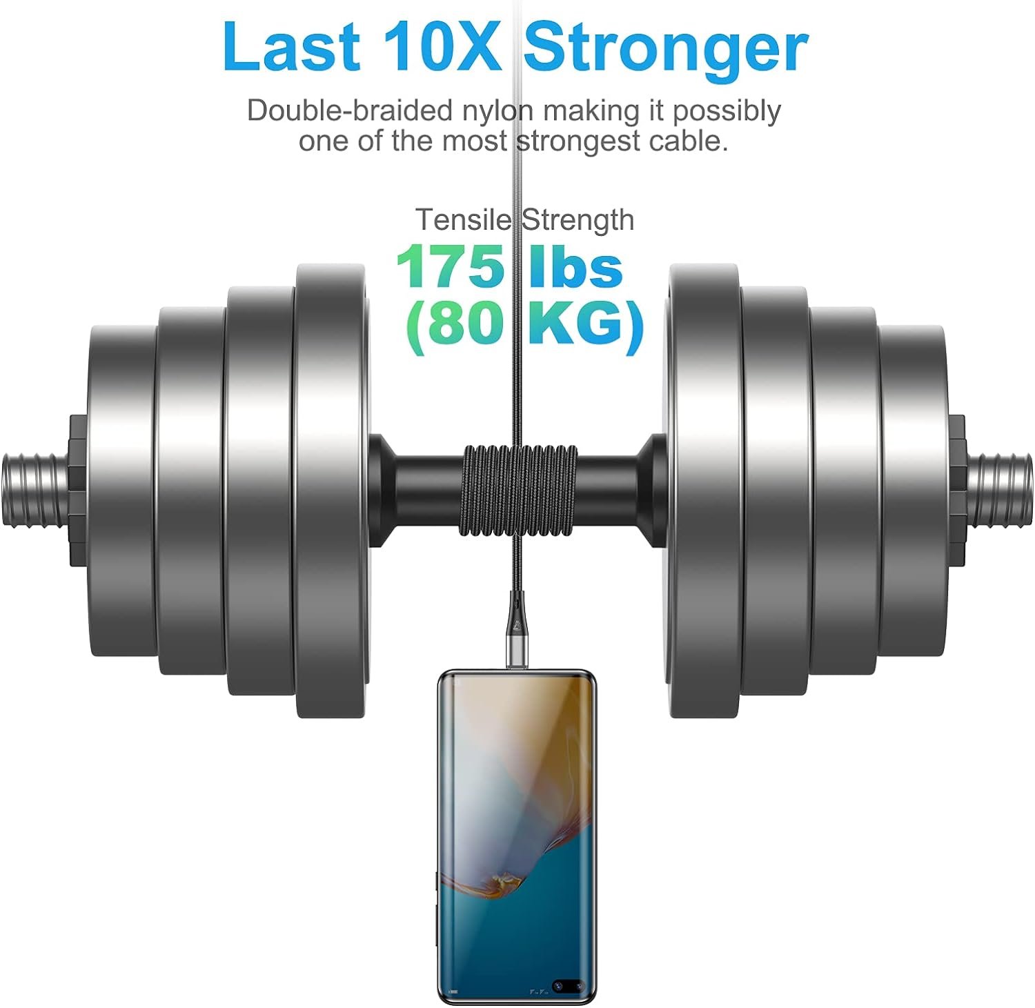 【Ultra Durability】:Premium nylon braided exterior with pure copper wires inside and laser-welded putted on connectors for maximum reliability and durability. it have excellent anti-twisting & Abrasion-proof property.Up to 10,000+ bend and 6,000+ plugging and unplugging lifespan.even survived by the pet chewing