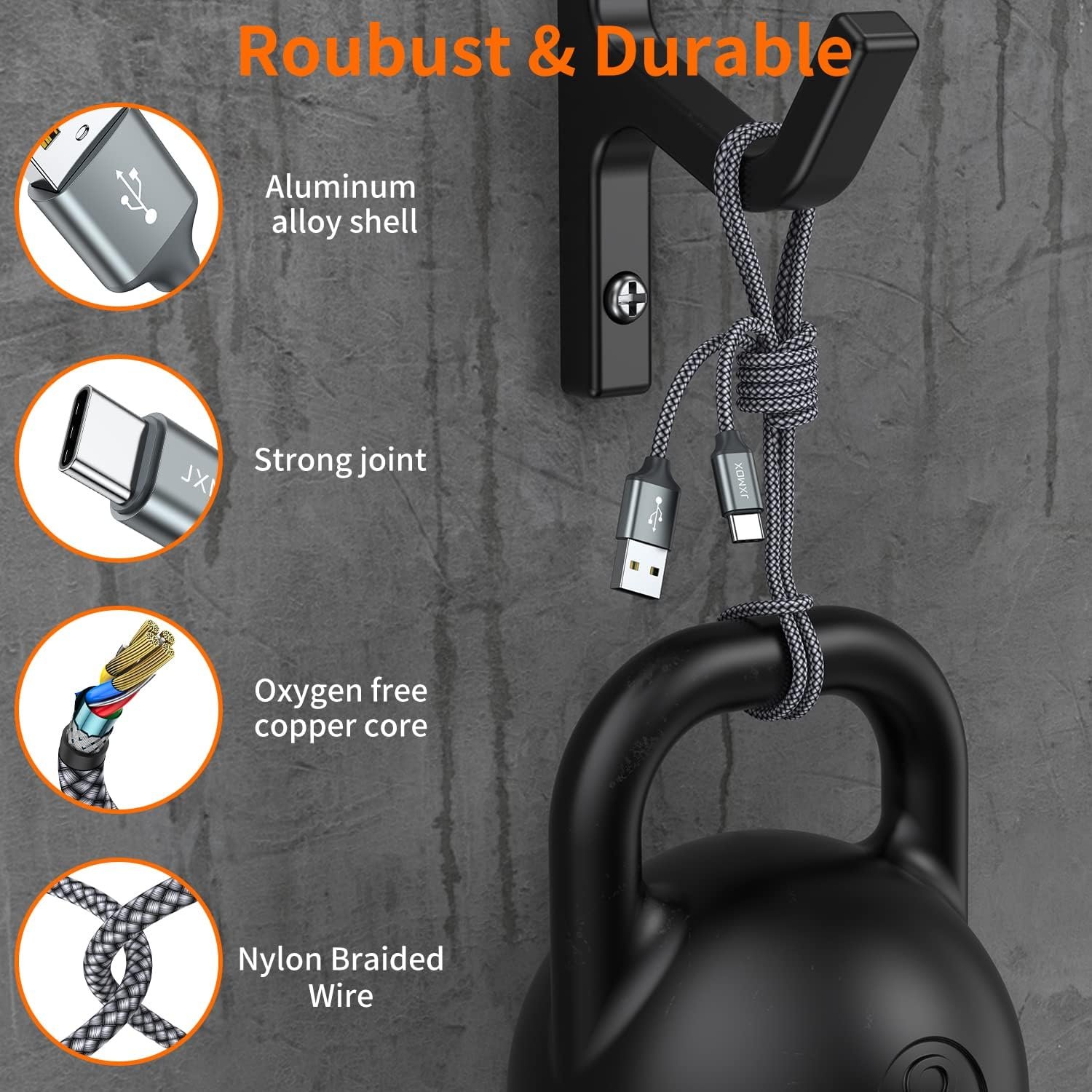 【Military grade material】: Strong military fiber can be use for long time. The most flexible, powerful and durable braided material, makes tensile force increased by 200%. Special Strain Relief design, can bear 20000+ bending test.