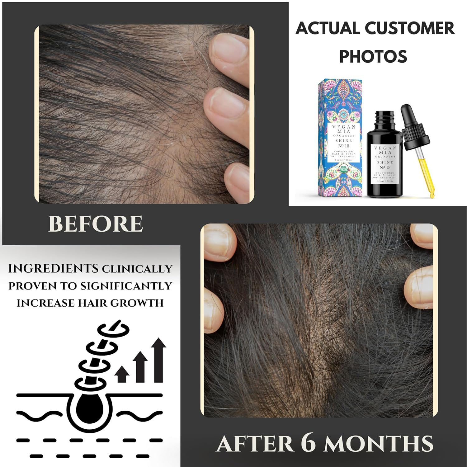 Proven Effective For Hair Growth; Not your ordinary hair and scalp oil! Our Shine hair scalp oil for hair growth is specially formulated to help grow your hair naturally with our proprietary blend of Organic Rosemary Scalp Oil for hair growth, Organic Lavender Essential Oil, Organic Cedarwood Essential Oil, and Organic Thyme Essential Oil – a powerful blend that has been clinically proven to significantly increase hair growth after 7 months of use.