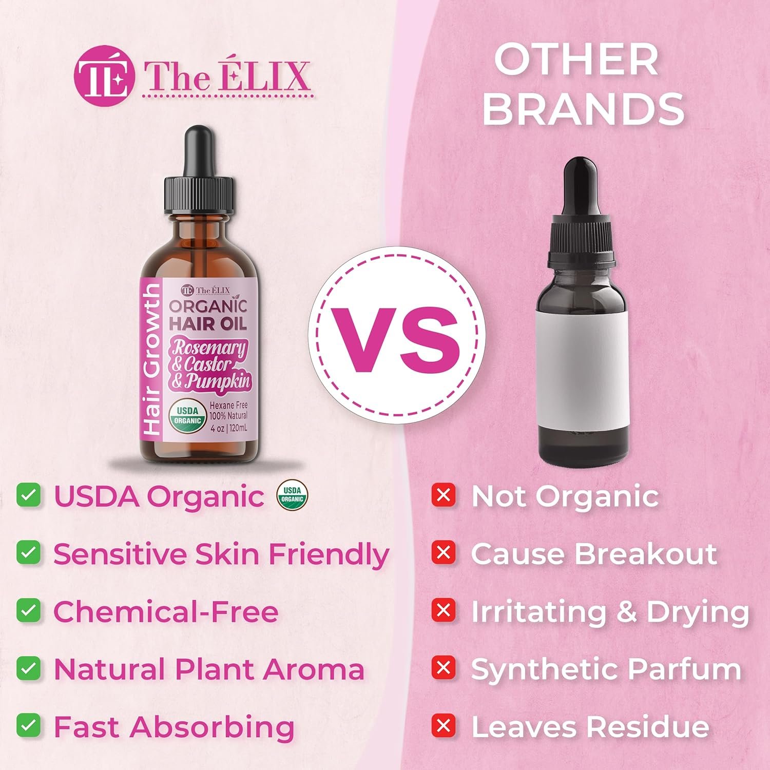 😎 Promotes Hair Regrowth – The ELIX premium blend of eight organic hair oils for hair growth that nourishes the scalp for visibly thicker and fuller hair