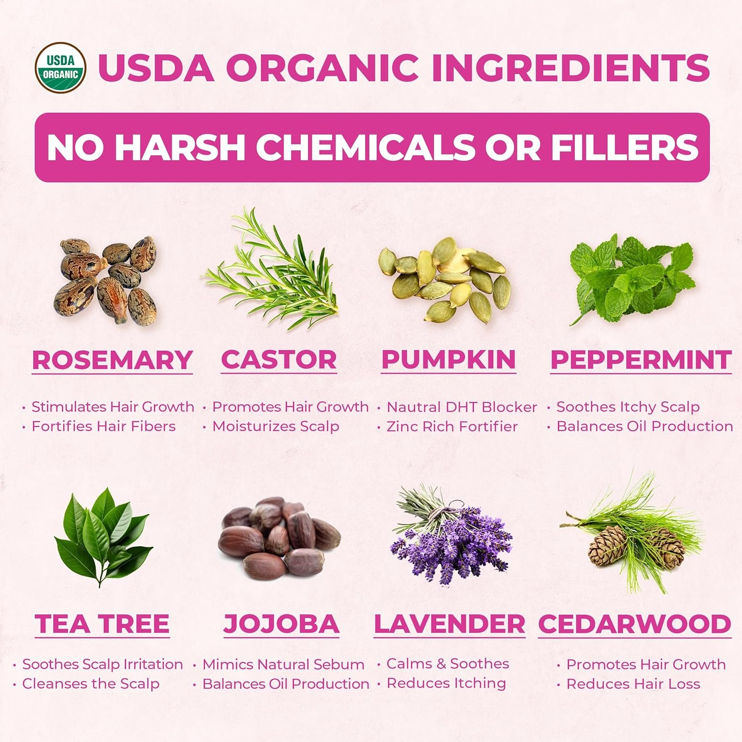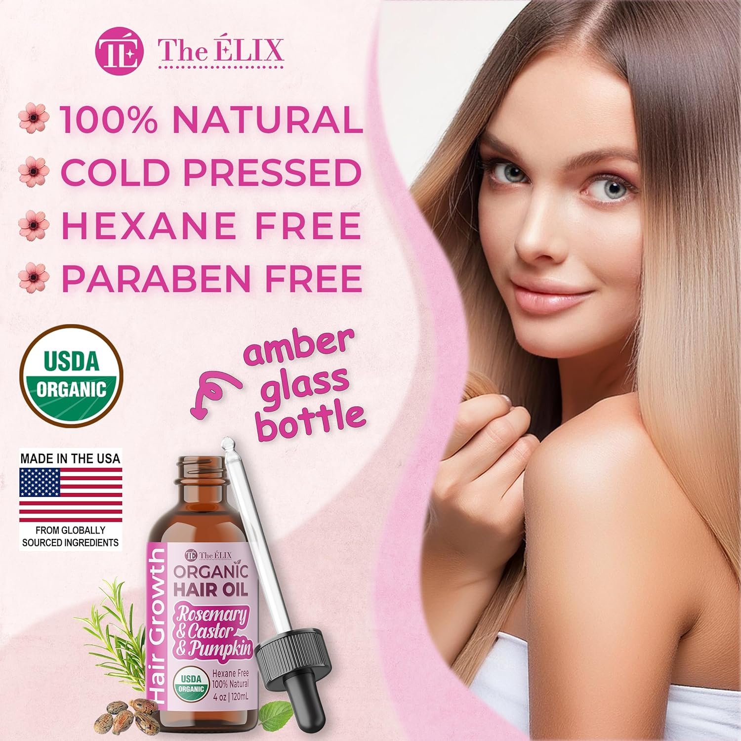 🌱 USDA Certified Organic – Made with 100% natural, hexane-free, and paraben-free nutrient-rich ingredients. Packaged in an amber glass bottle to preserve quality