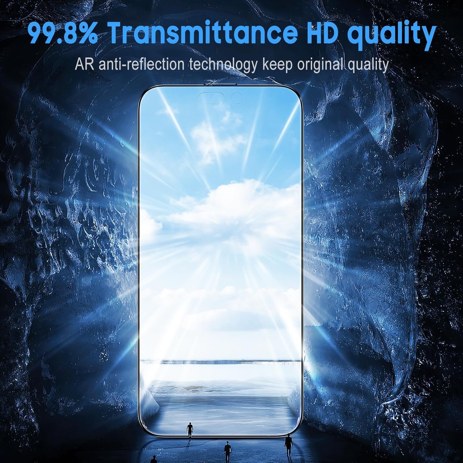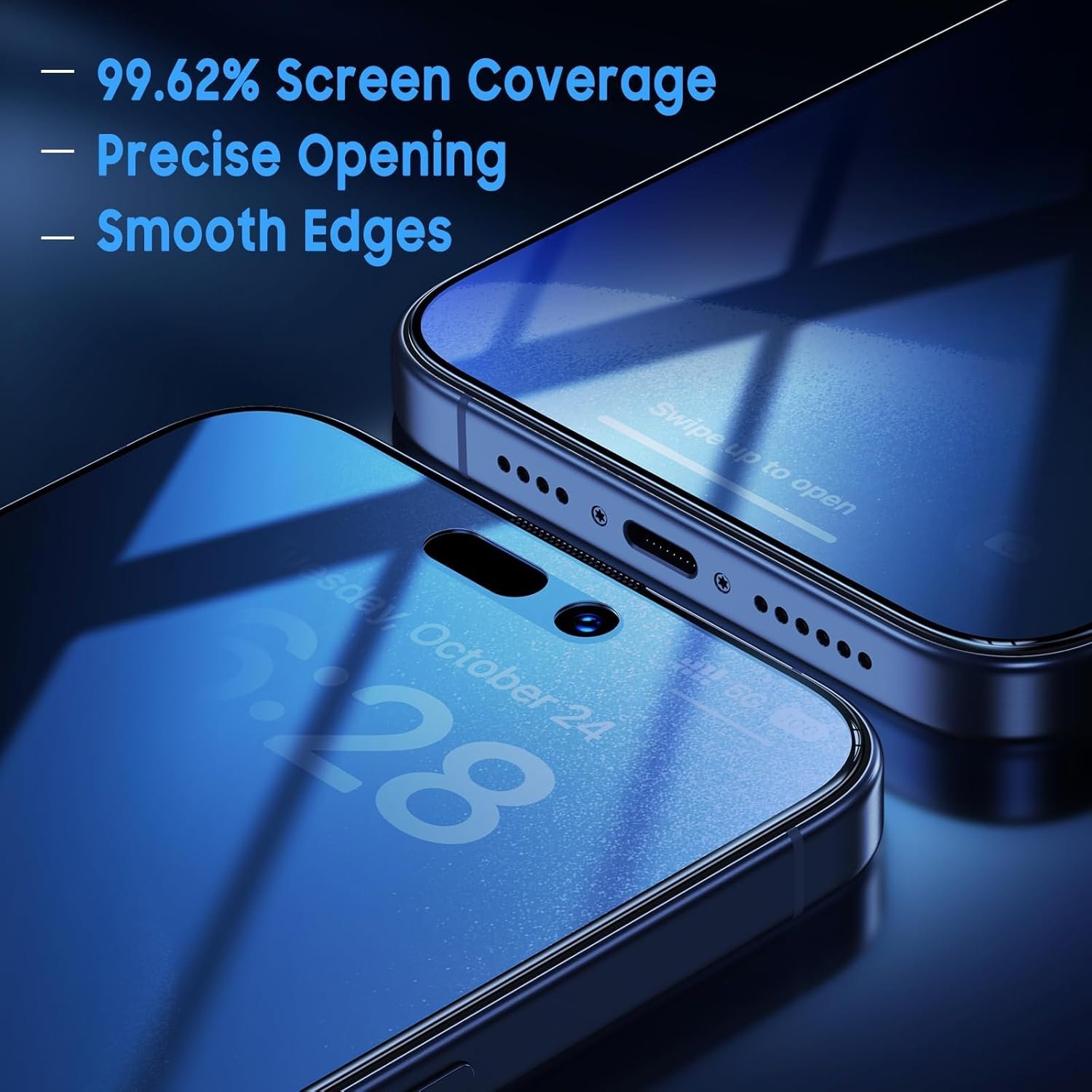 【Eye Protection Against Blue Light】 Eye health is the priority, our 15 Pro Max privacy screen protector utilizes EVA glass material combined with EVA multi-coating technology and filter film technology, allowing the screen to filter out harmful blue light.