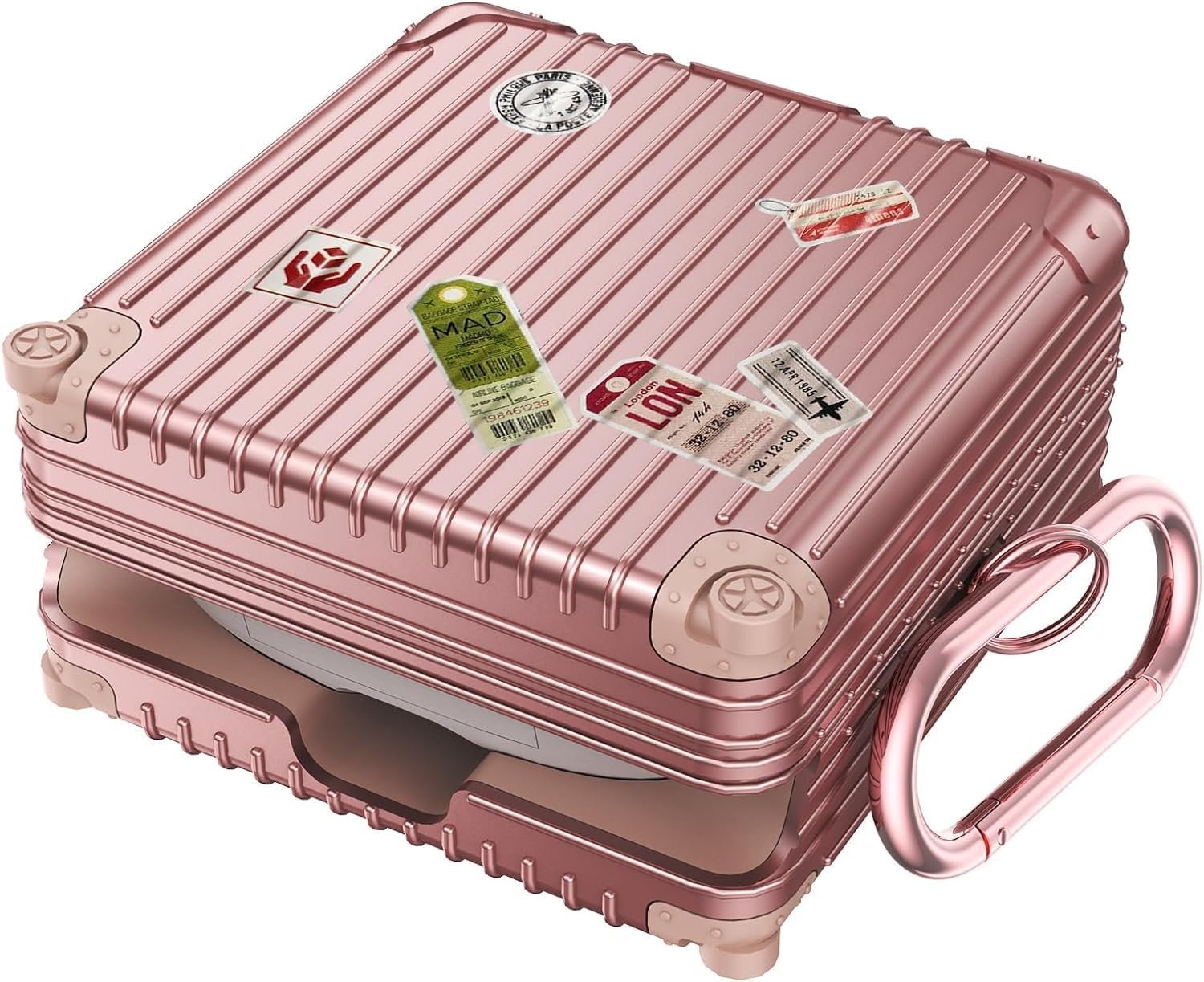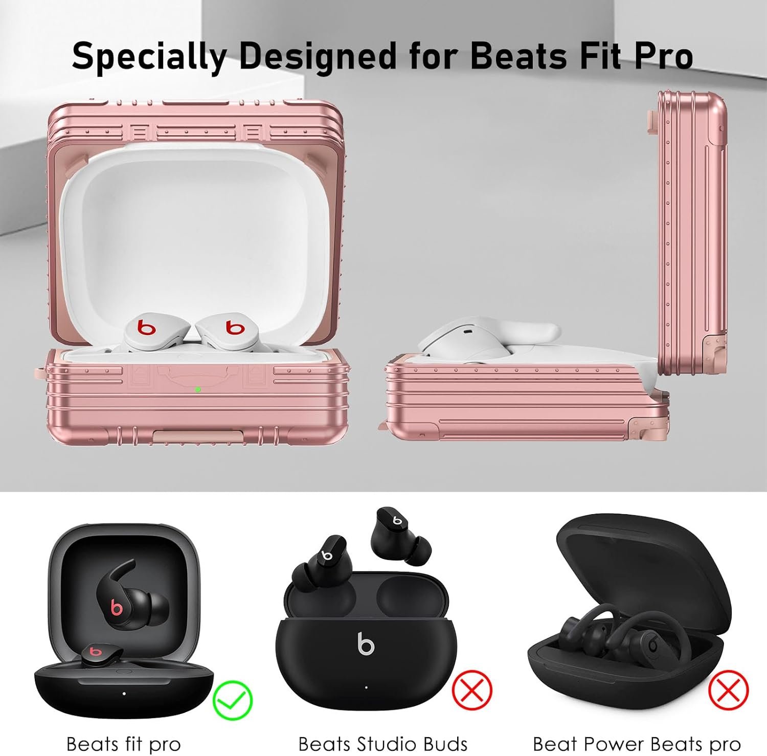 V-MORO Compatible with Beats Fit Pro Case Cover Cute Suitcase Design Case for Apple Beats Fit Pro 2021,Fashion Funny Protective Earbuds Hard Case for Women Men with Keychain Accessories(Rose Gold)