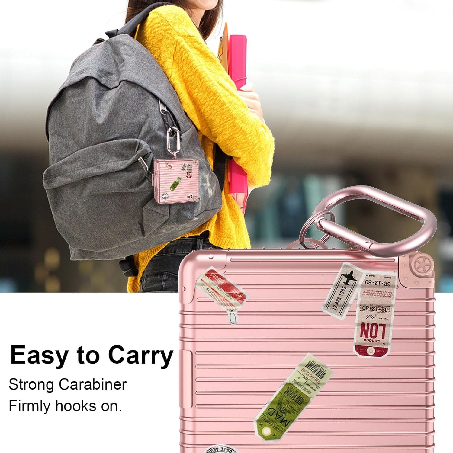 V-MORO Cute Suitcase Design Case Comes with High Quality Carabiner.