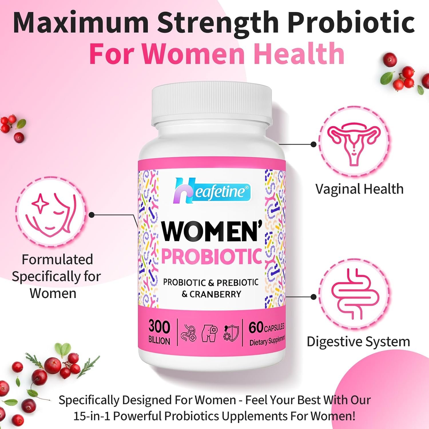 Why Choose Heafetine Womens Probiotic: Our Probiotic produced in GMP certified US factories and all of our cranberries are grown and processed in North America. Independently Tested in 3rd Party Labs in USA. NON-GMO probiotics, Gluten Free, vegan, dairy and soy free
