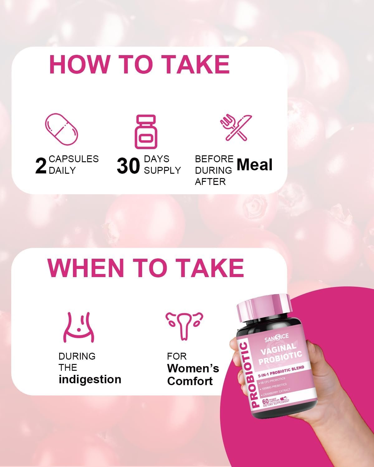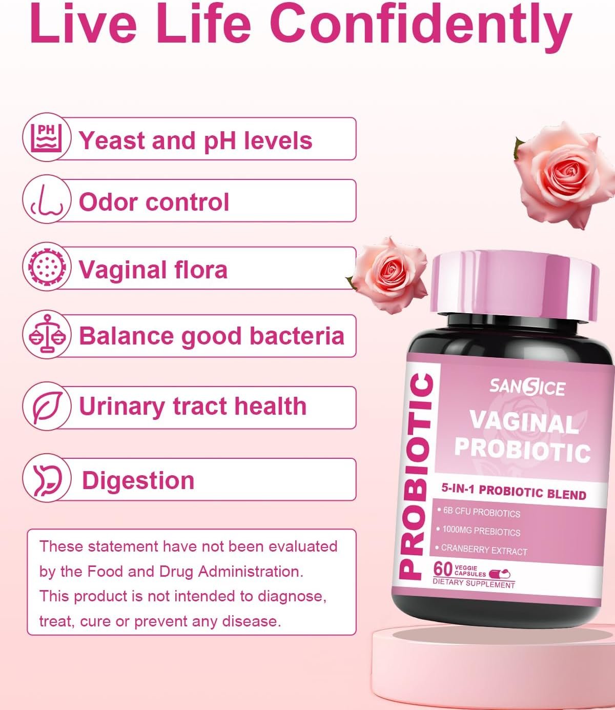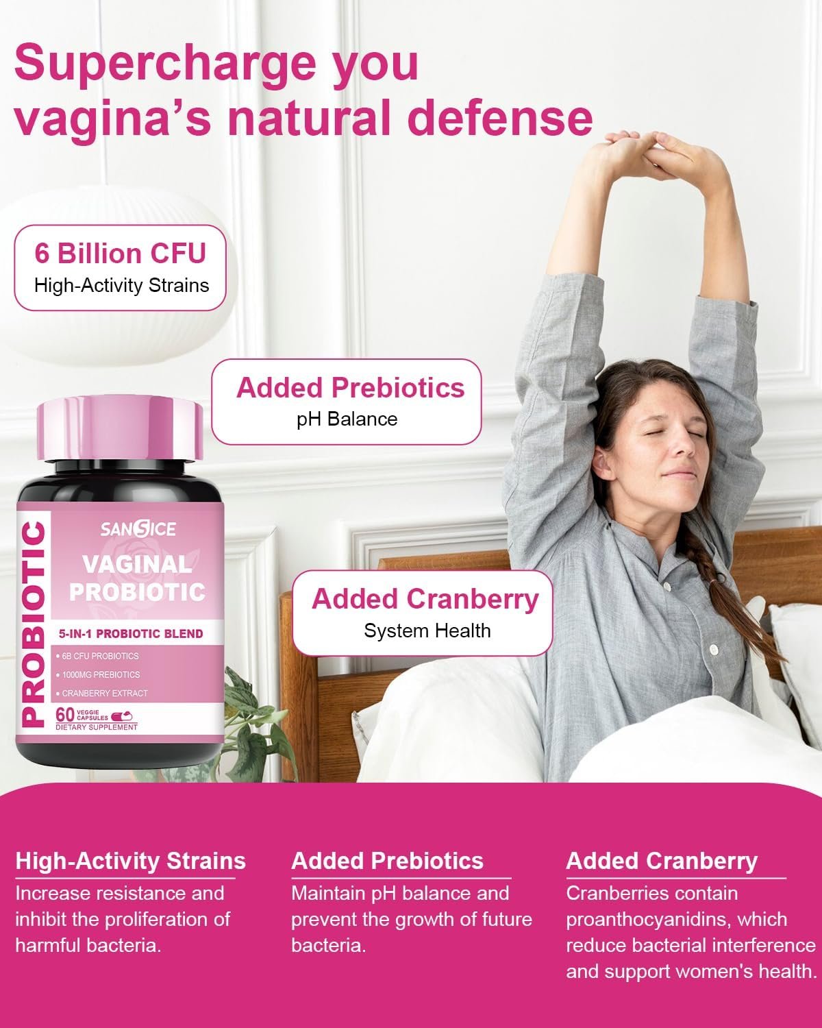 【Vaginal Wellness】SANSICE Female Vaginal Probiotics boast 6 billion CFU of targeted strains, fostering yeast balance & vaginal wellness. Experience comprehensive health benefits tailored for women.
