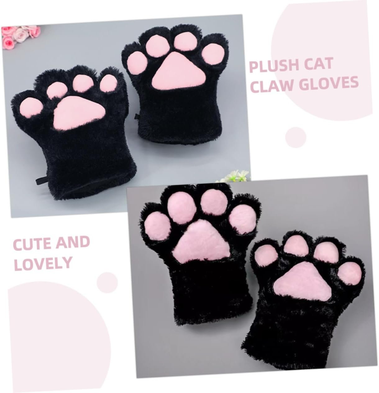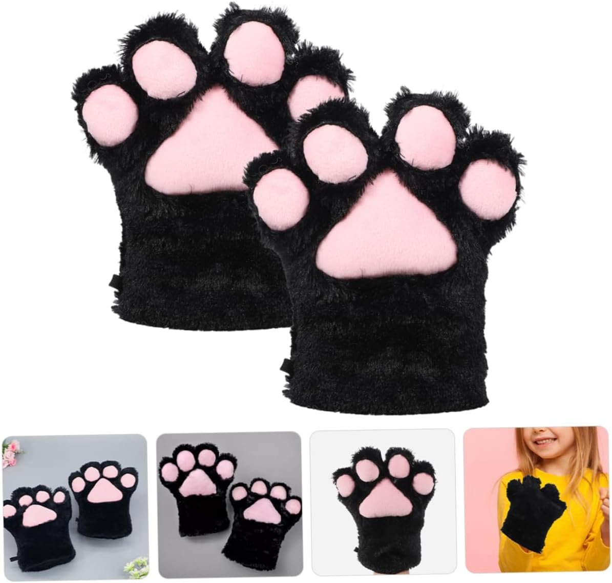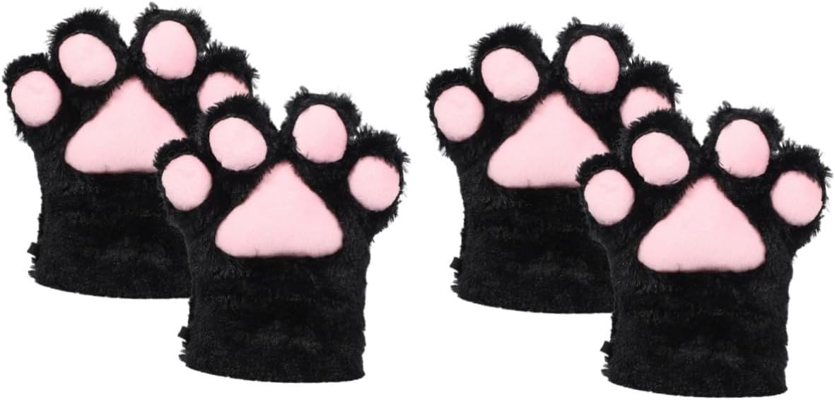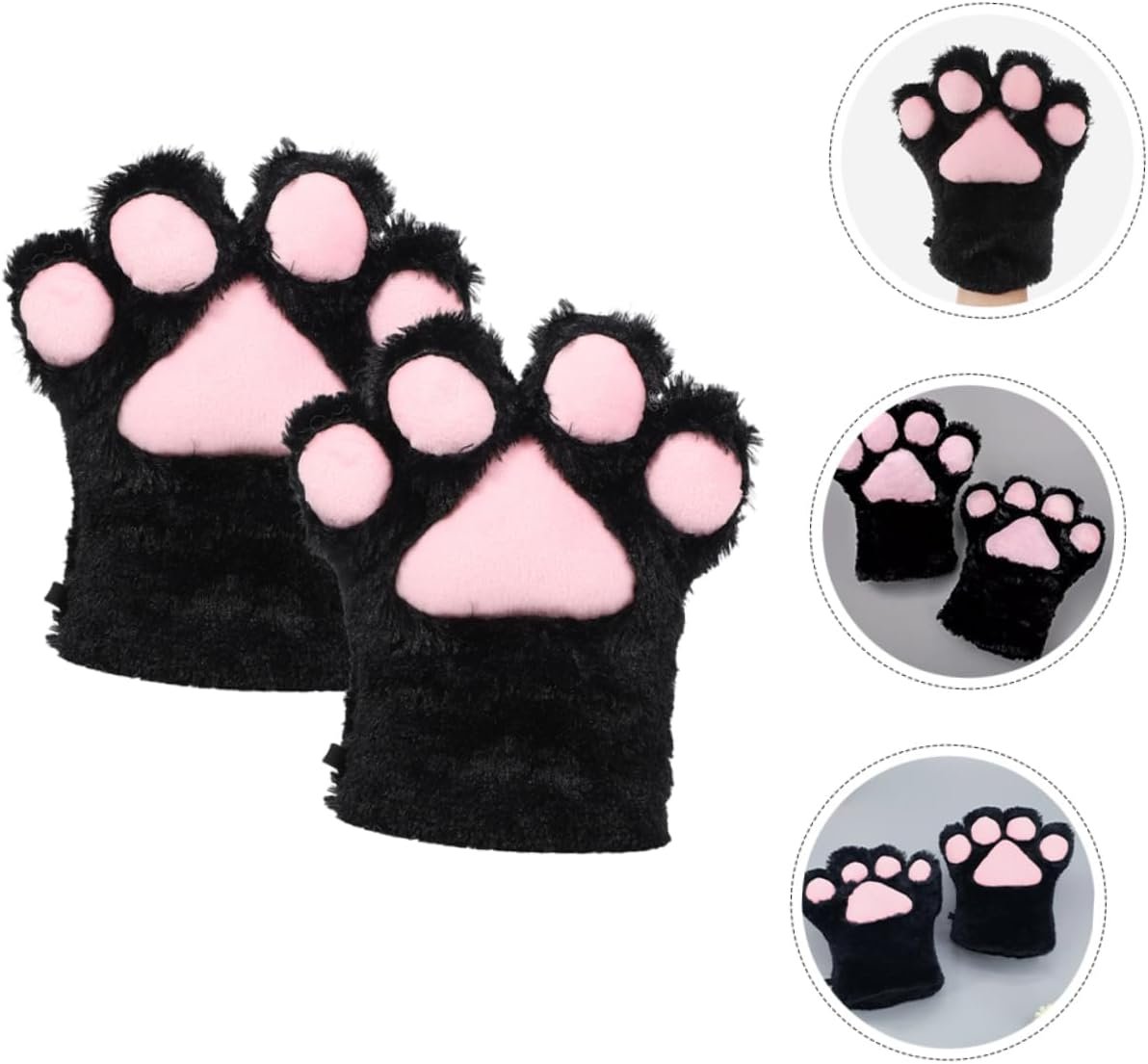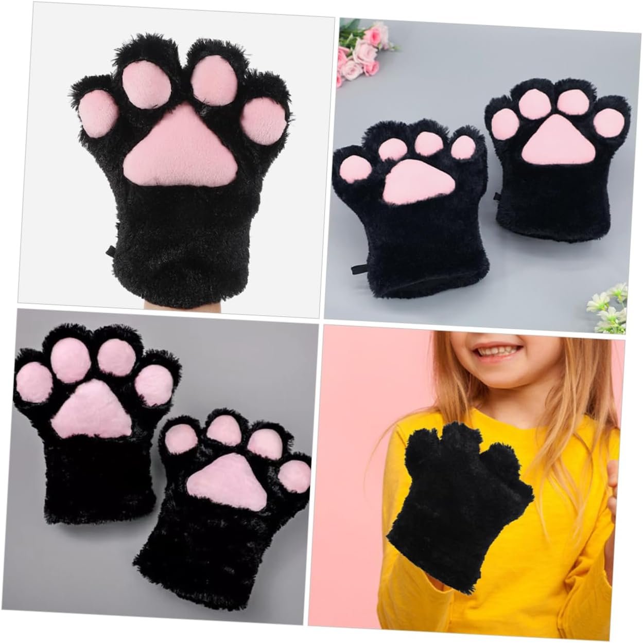 VALICLUD 2 Pairs Bear Claw Gloves Cat Litter Mat Pets Cat Socks Gloves Men Dog Paw Cleaner Pet Wipes for Cats Scratcher Cat Grooming Glove Para Tablets Cats Cat Costume Feral Black Plush