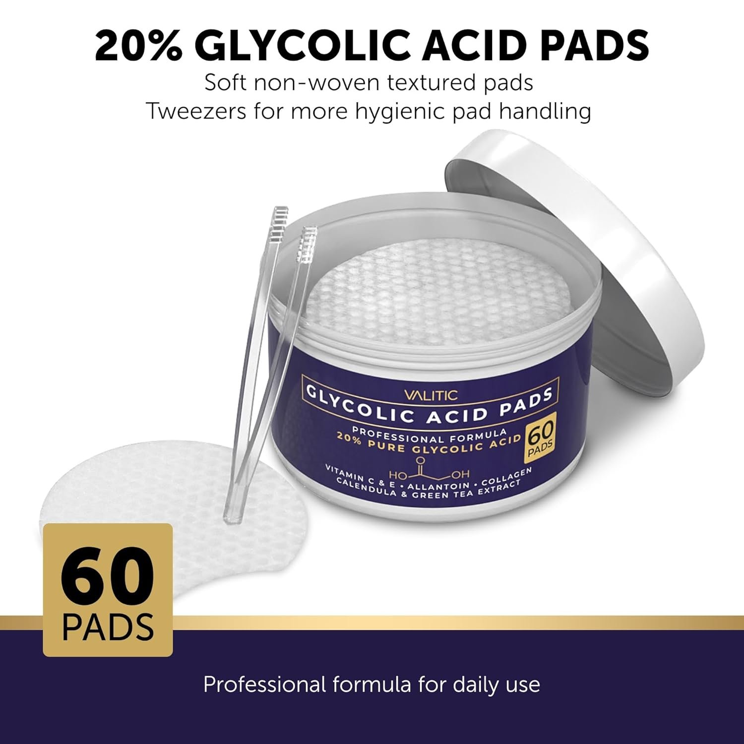 Non-woven Textured Pads & Tweezers – Come as non- woven textured face wipes and tweezers to hygienically remove the pads and precise application of glycolic acid to the skin