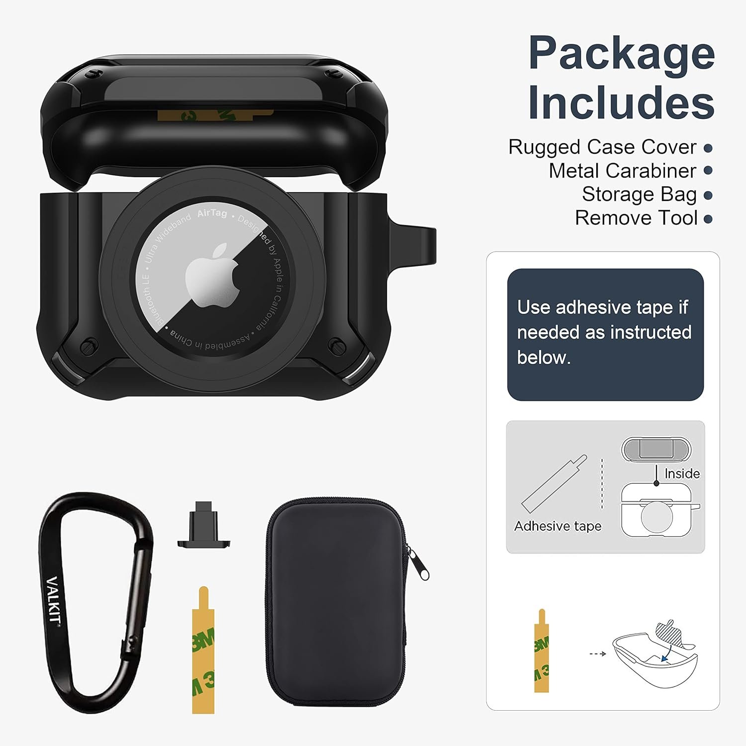 Package Include – 1*Rugged Case for Airpods 3rd Generation and Airtags, 1*Metal Carabiner, 1*Spare Adhesive Tape and 1* Zippered Box. (Apple AirPods 3 & Airtags Tracker are NOT included.)