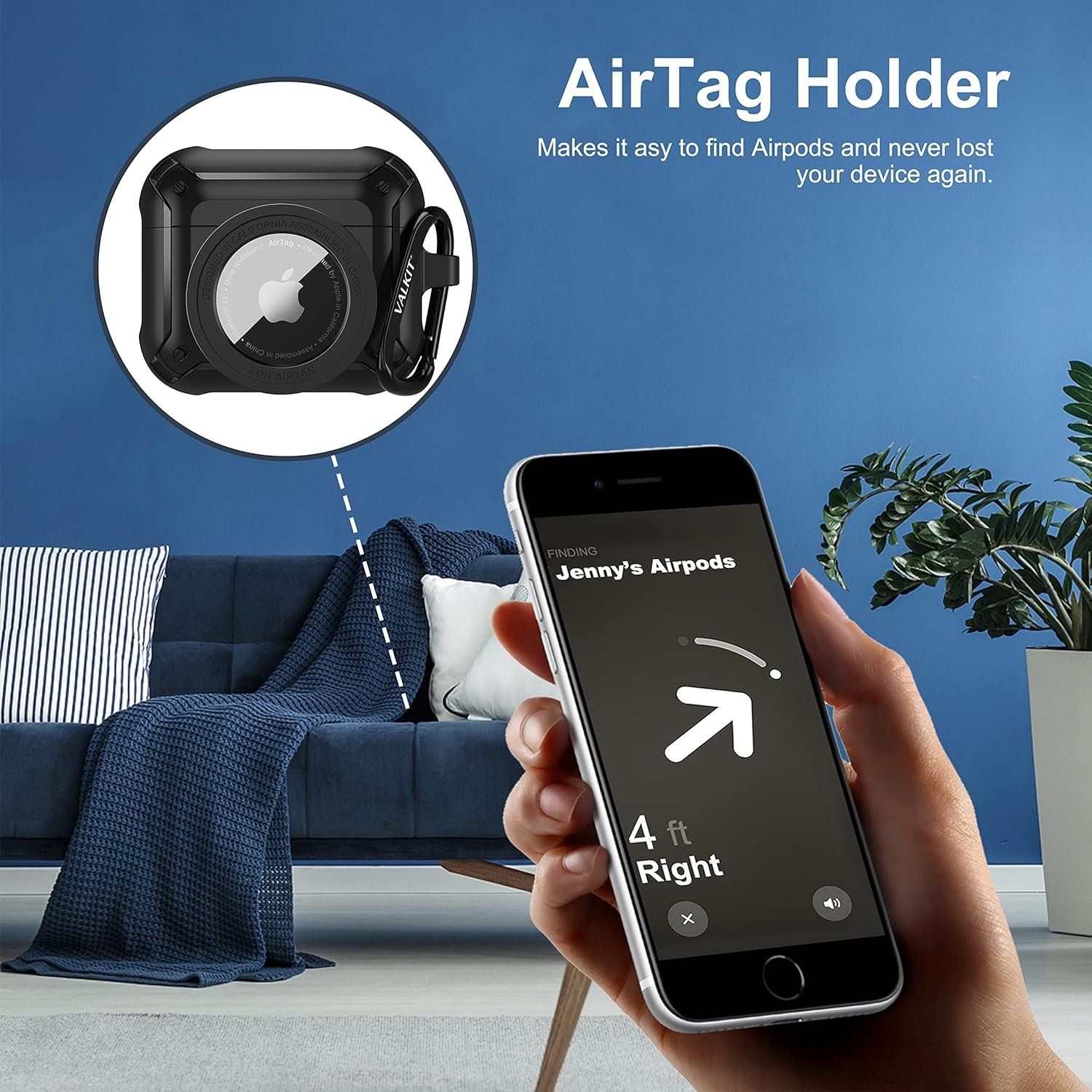 Valkit Compatible Airpods 3 Case and AirTags Case Cover, 2 in 1 Rugged Protective Airpods 3rd Generation Case for Men Women with Keychain Shockproof Skin for Airpods 3 Gen and Airtags, Black