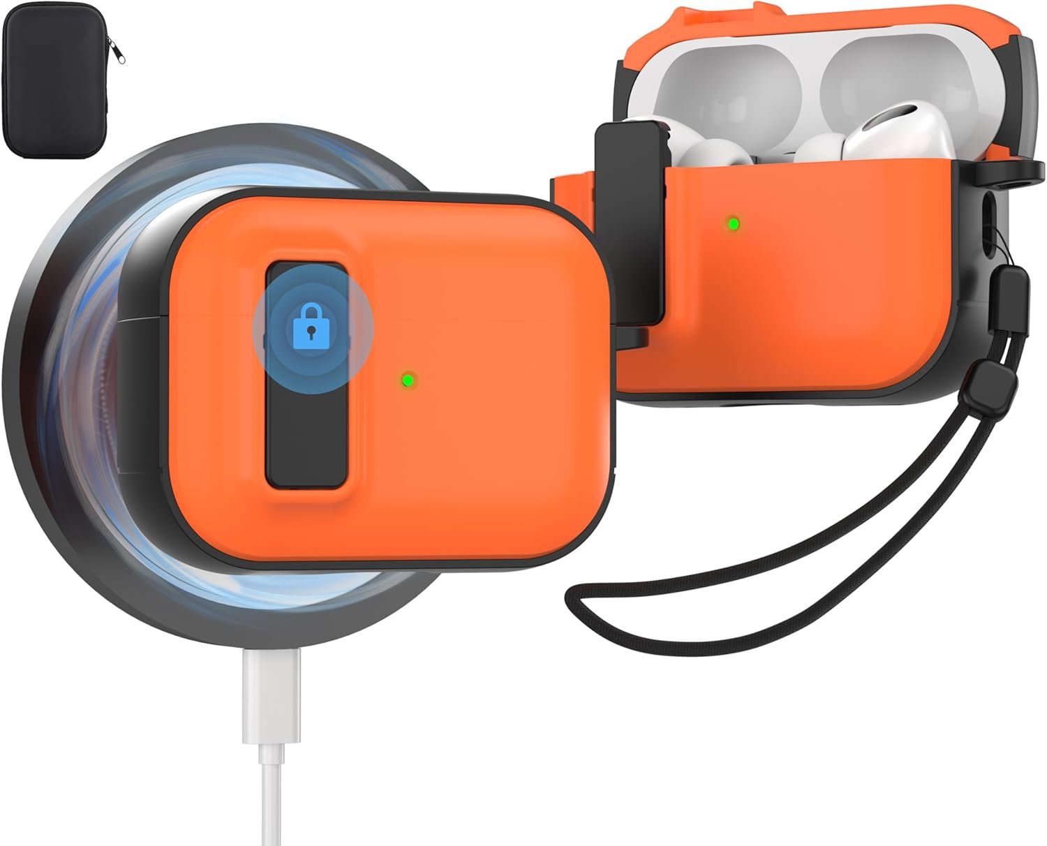 【Package Include】1x Secure Lock Case for Airpods Pro 2nd/1st Gen, 1 x Cleaning Pen, 1 x Metal Keychain, 1 x Lanyard, 1 x Zipper Bag.(NOT Include AirPods Pro 2/1 Gen and Charging Case)