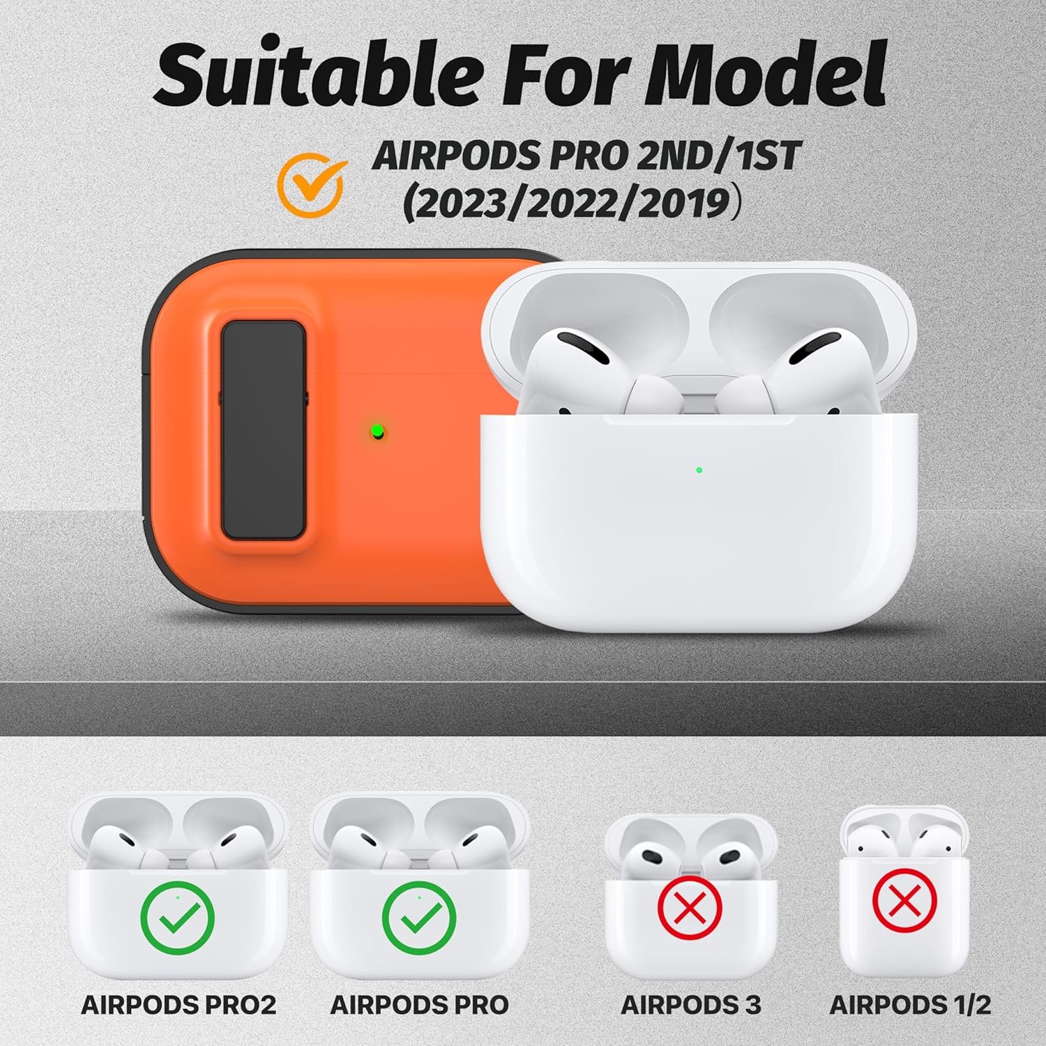 【Compatible Model】The secure lock case cover is compatile with Apple AirPods Pro 2nd Generation Charging Case 2022/2023(USB-C Charging) Release and Airpods Pro 1st Gen 2019 Charging Case. Airpods Pro 2nd/1st and Charging case not included.