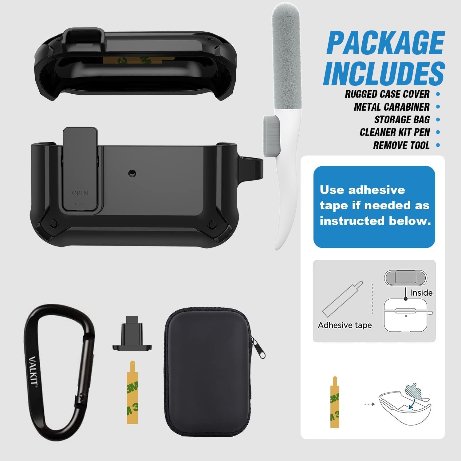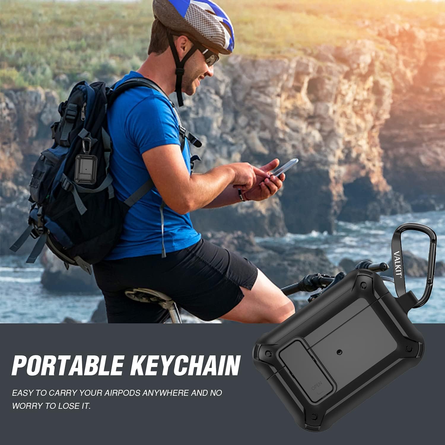 [Full Shockproof] Valkit rugged Airpods pro 1st gen case for men is made of military-grade resistant TPU material and with secure lock clip design, which protects your Airpods pro from drops, scratches and bumps.