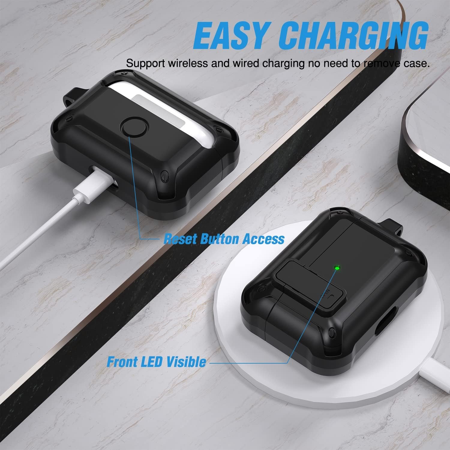 [Easy Charging] The protective case cover supports wired and wireless charging without removing the AirPod pro case. Front LED for the charging case is visible.