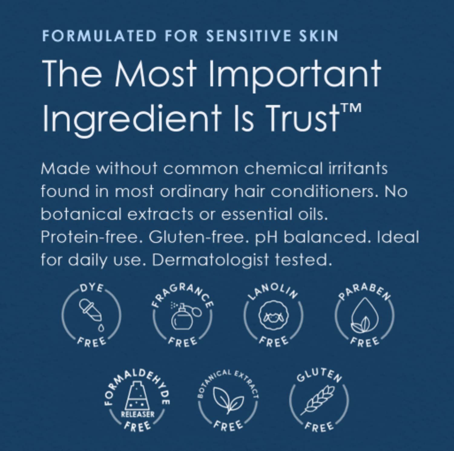 Free of common chemical irritants: Our products are free of dyes, fragrance, masking fragrance, lanolin, parabens and formaldehyde releasers