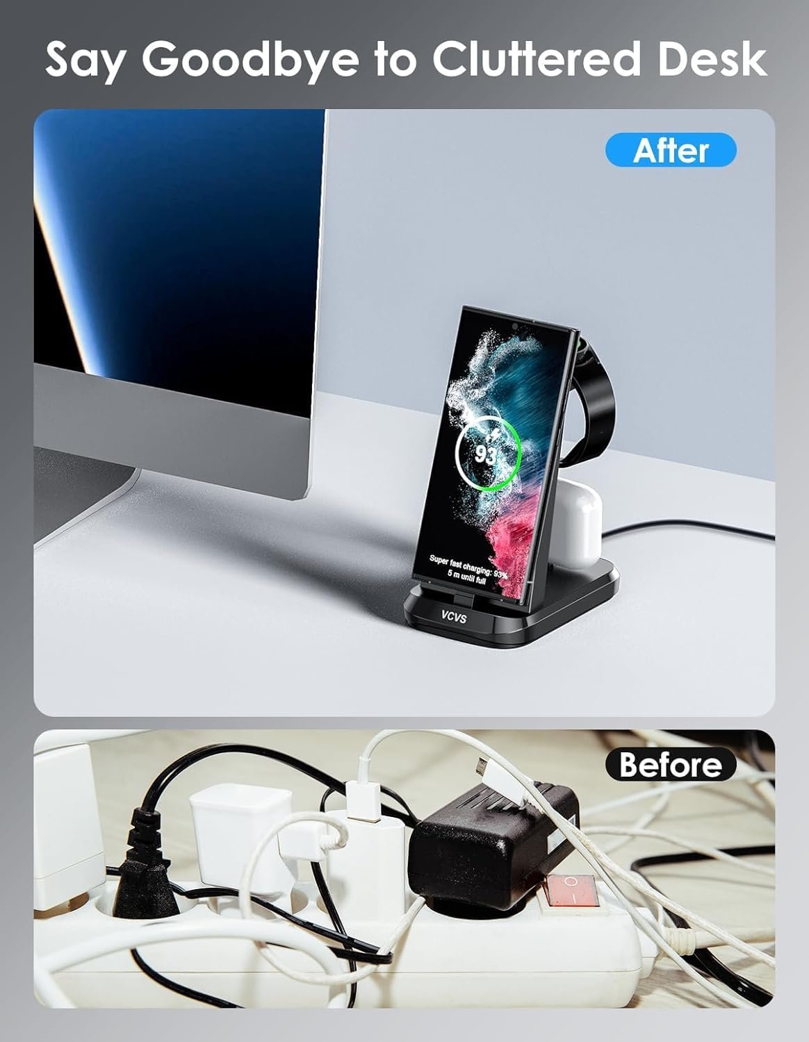 【3 in 1 Multipurpose Charging Station】The all-in-one charging station has the ability to charge your USB C phone, galaxy watch, USB C earbuds simultaneously, reducing cable clutter, keeping the desktop organized and making the charging process easier. It is an essential accessory for home, office, travel, gift…