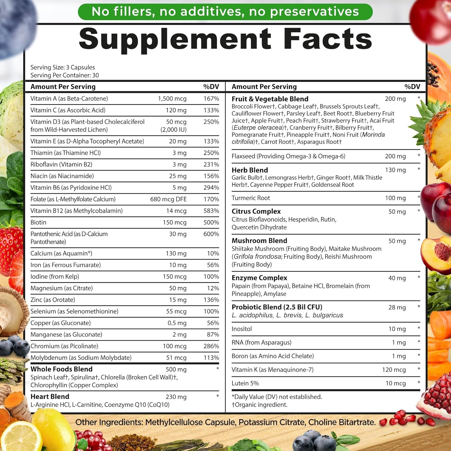 Complete Multivitamin for Women & Men: Provides 100% of essential daily nutrients, including Vitamin A, B-Complex, C, D3, K2, E, Biotin, CoQ10, L-Arginine HCI, L-Carnitine, Omegas, Turmeric, and more; supports energy, skin, vision, and bone strength.