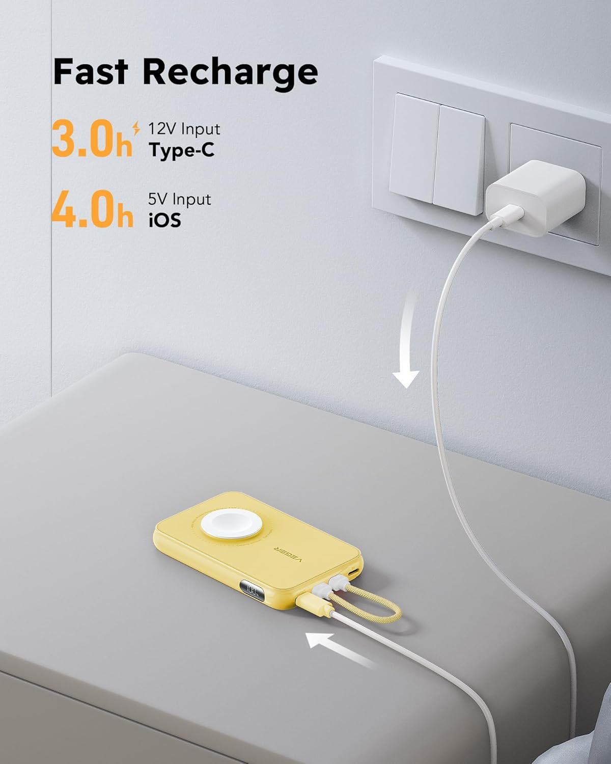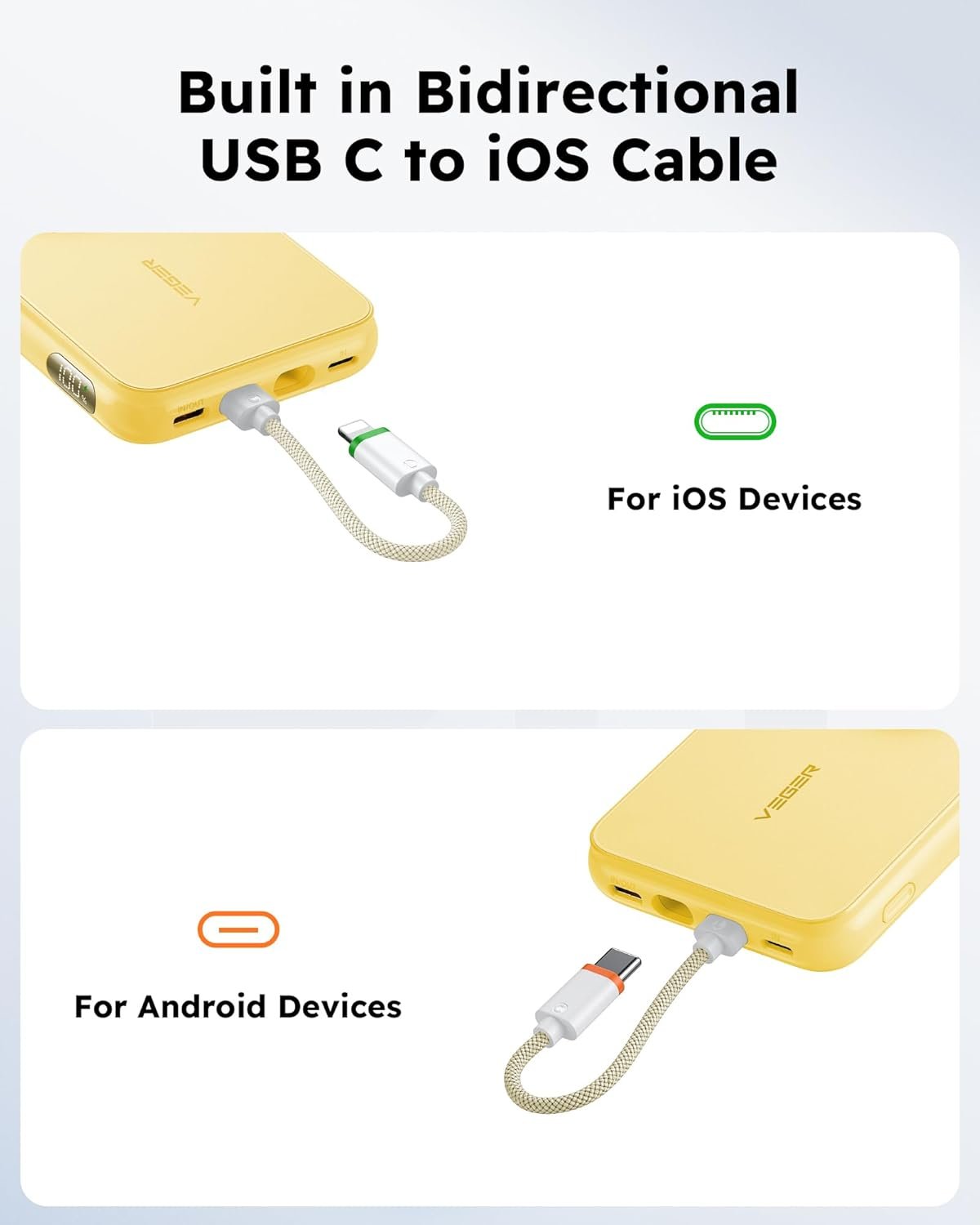✔️【What You will Get】: A VEGER 10000mAh portable charger with built in cable, 1x user manual, 1x USB C cable, our worry-free 12 month guarantee and 7 Day/24H friendly customer service. If you have any problems, please contact us and we will solve it within 12 hours.