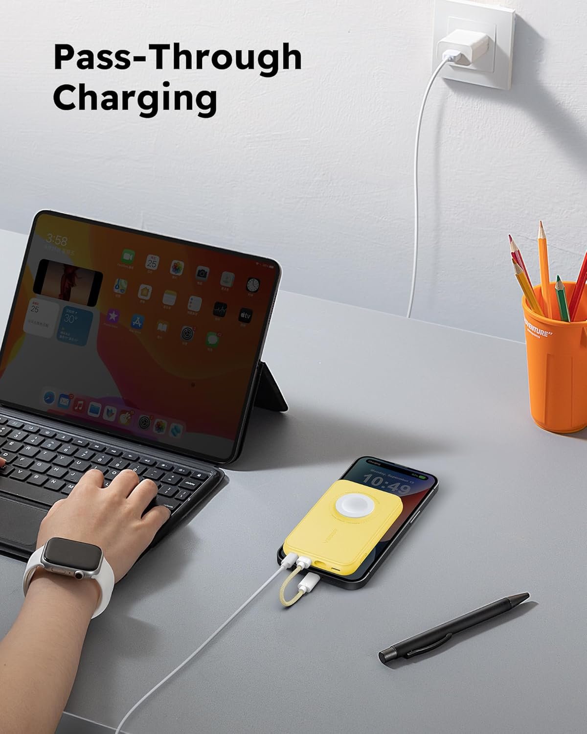 ✔️【Compatibility】: This portable battery charger is widely compatible with iPhone 15/14/13/12/Pro Max series, Apple Watch 9/8/7/6/5/4/3/2/1/SE/Ultra, as well as Sumsung Galaxy, Google Pixel, and other Type C devices or tablets.
