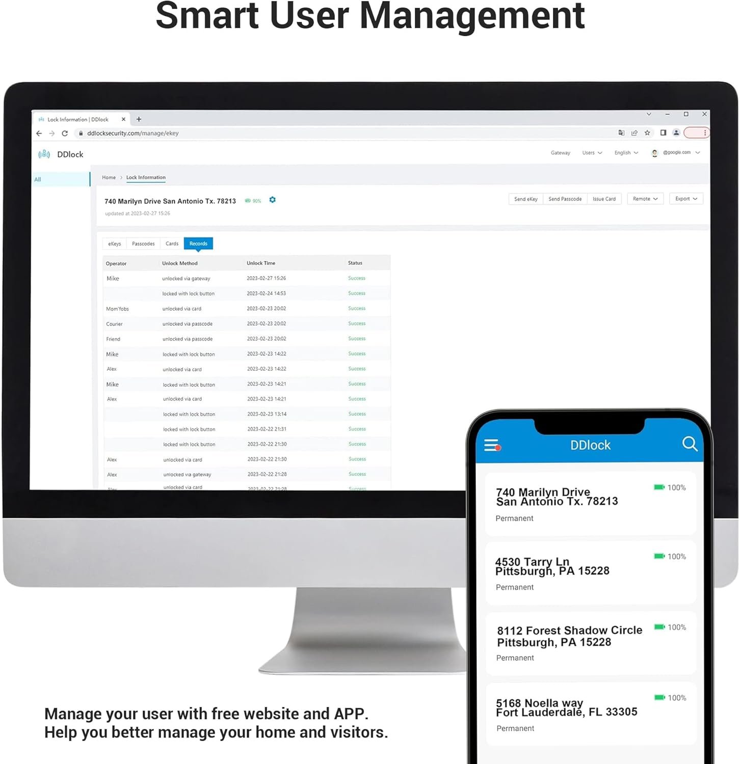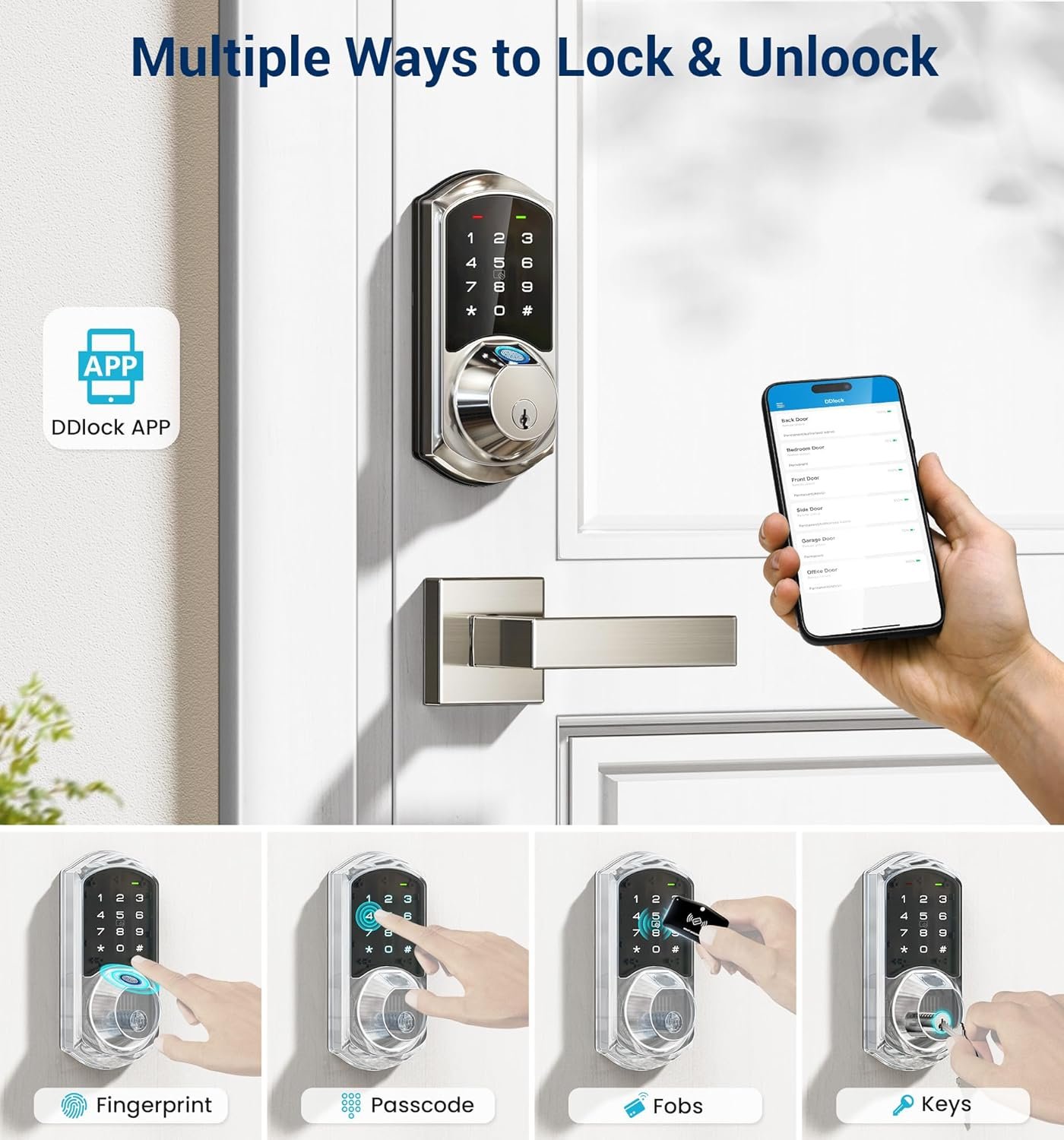 Convenience & Security: Work with DDlock App to share eKeys, manage users and set various access codes. With anti-peep code, wrong code limit to secure safety