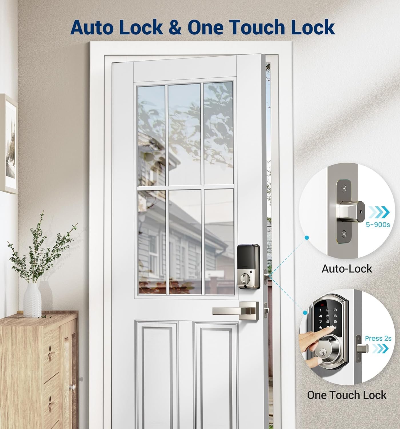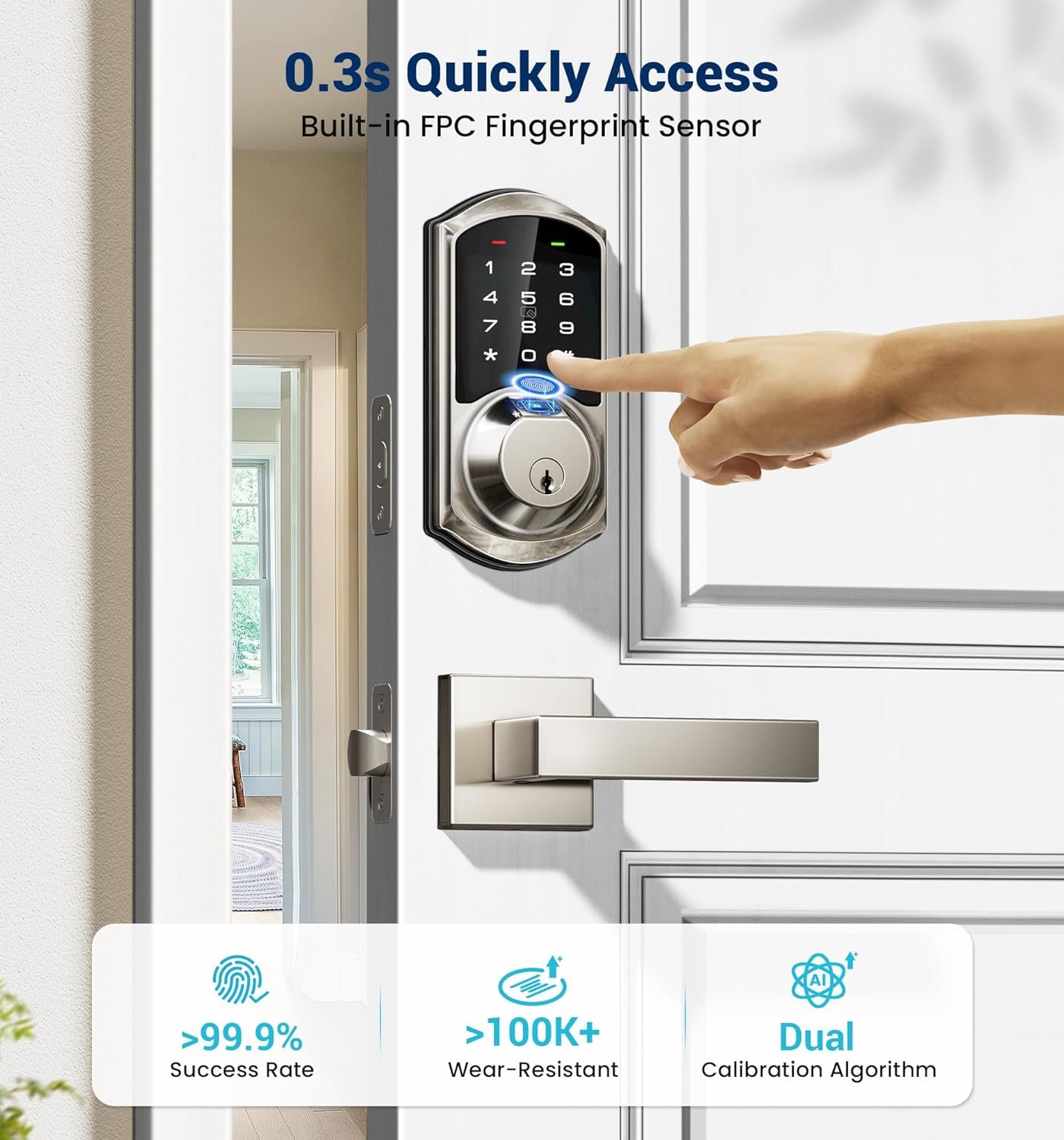 Instant Keyless Entry: Fingerprint or IC card swiftly unlock in 0.3 s. Auto-lock in the time customized or one-touch locking, ideal for busy people and those who lock themselves out