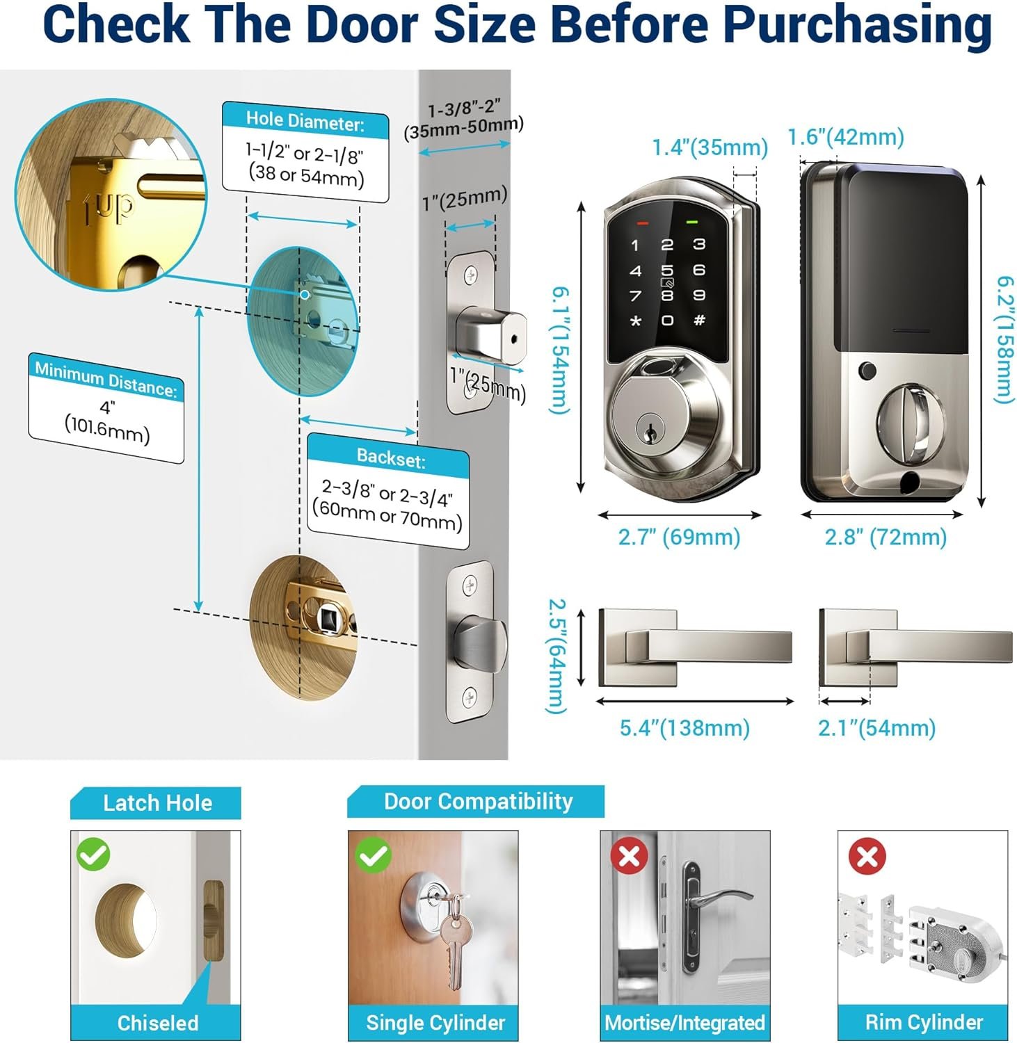 Effortless Installation: Install quickly with just a screwdriver. Compatible with standard US doors. Its chic design seamlessly complements home decor and is more duarable with weatherproof rating