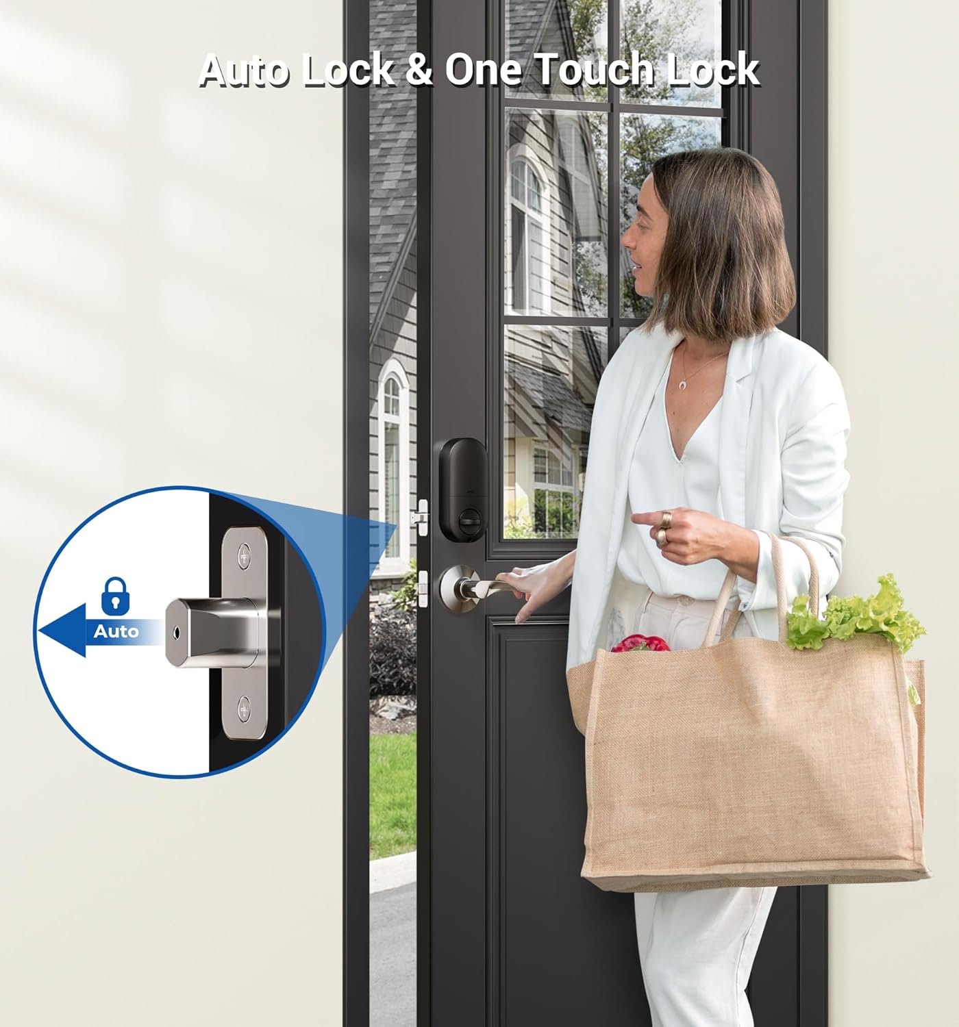 Smart and Convenient: With anti peeping function when entering passwords, and the front door lock set can ‘auto lock’ in 10-99 seconds, or press a key for 2 seconds to lock the door manually