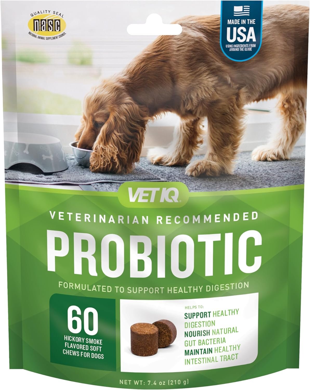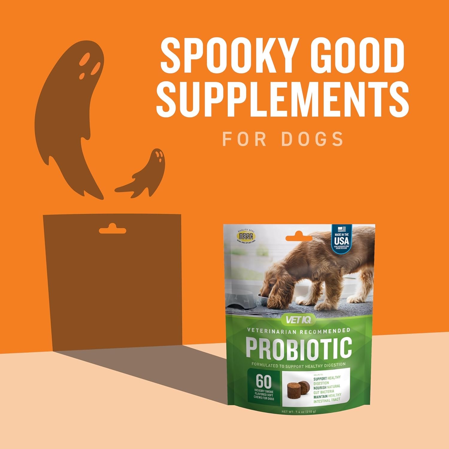 VetIQ Probiotic Supplement for Dogs, Digestive Support for Dogs, Nourishes Gut Bacteria and Supports Bowel Function, Hickory Smoke Flavor, Made in The USA, 60 Count