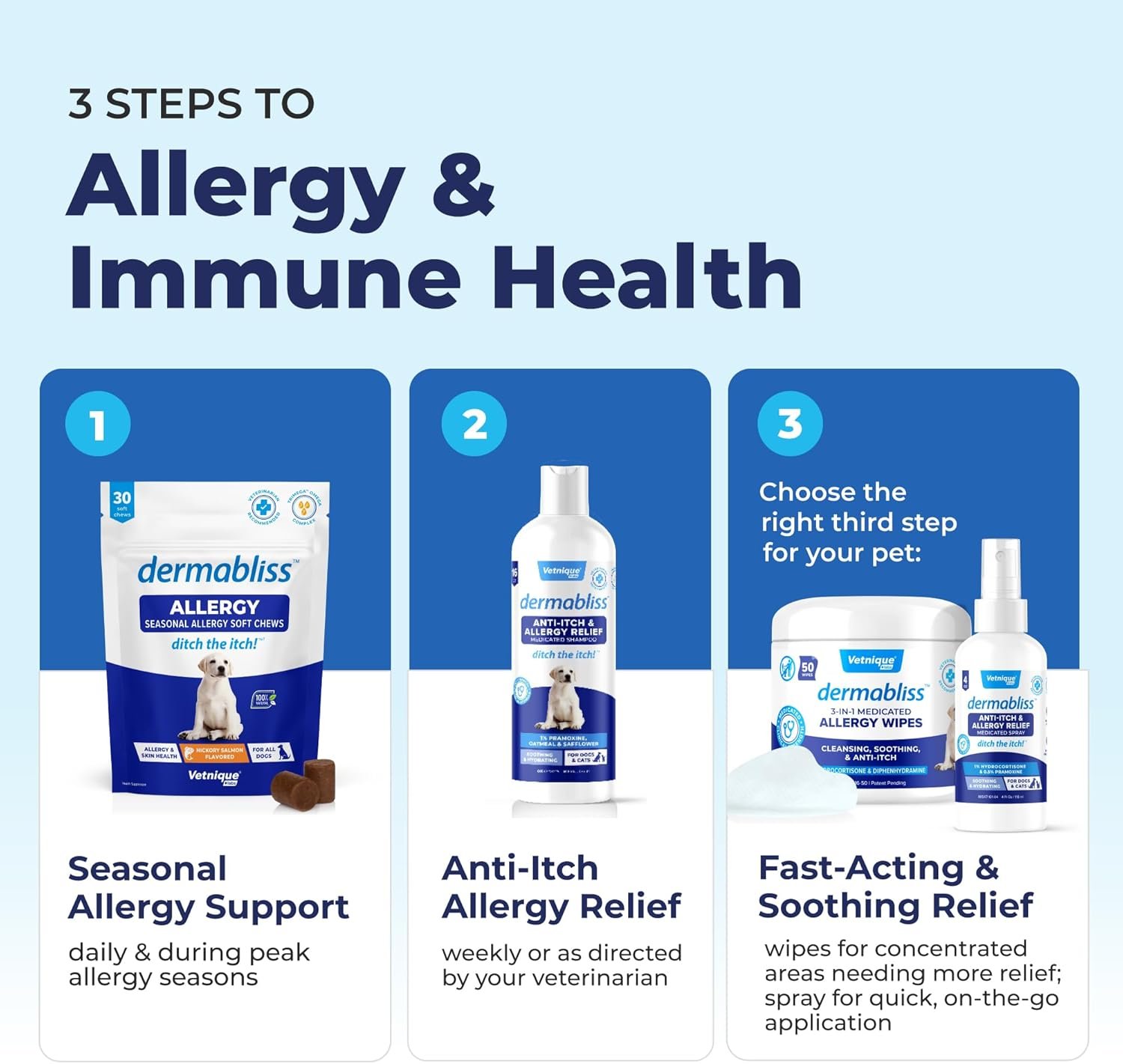 CREATED BY VETS FOR HAPPY PETS: Dermabliss ditch the itch skin and allergy care–and all Vetnique products–are created with the health and well-being of pets and pet parents in mind. Be sure to check our store page for more great pet products.