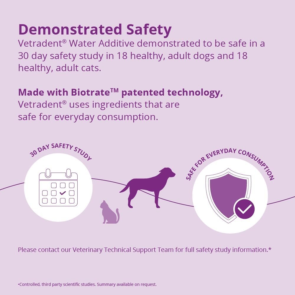 VETRADENT Water Additive has the ‘VOHC Accepted’ Seal to Help Control Tartar in dogs. It is scientifically formulated with Biotrate Technology to control tartar by working against bacteria and altering the environment in the pet’s oral cavity. This easy-to-use home dental product is provided to the pet by simply adding a measured amount of VETRADENT Water Additive to the pet’s drinking water.
